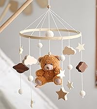 - Teddy Velvet Nursery Mobile:Baby mobile for crib can blend into the nursery design of your choice. The white moon and clouds, brown stars, and brown bear will be focal points in your neutral nursery,We share your goal to making sure your baby is exposed to something nice and safe from birth