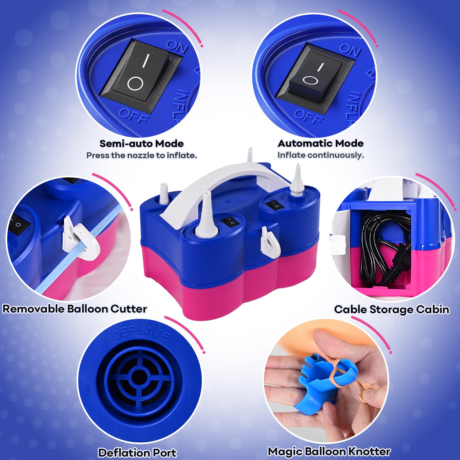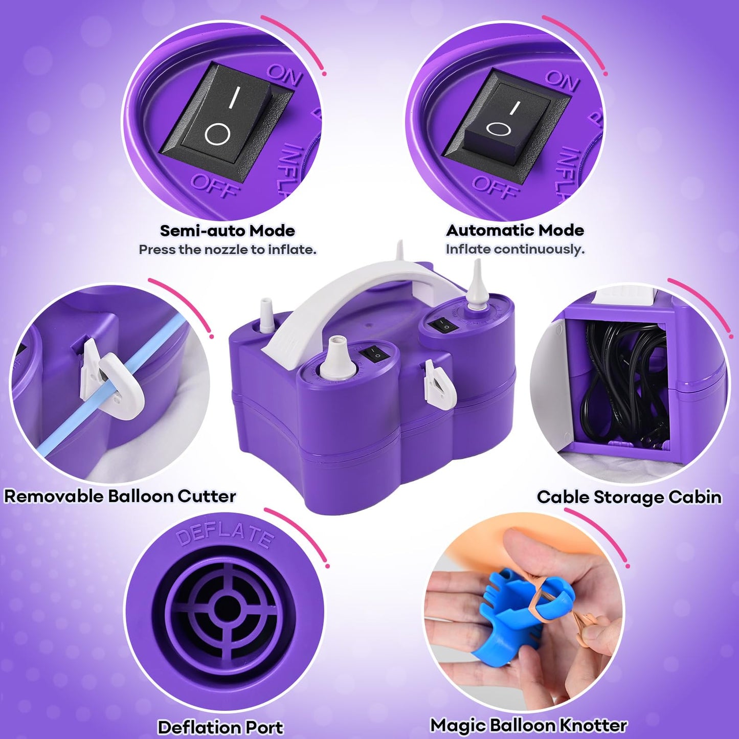 - Dual Inflation Ports: Equipped with two motors and distinct ports for inflating regular latex balloons and other small balloons like 260q and foil balloons.