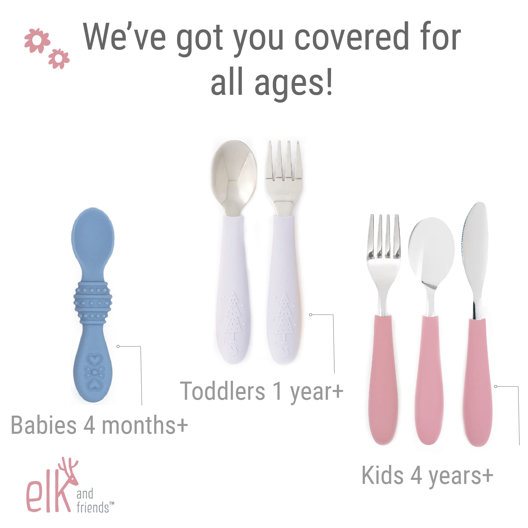 Elk and Friends Silicone Baby Spoons | First Stage Infant Toddler Spoon | Baby Led Weaning Stage | Dishwasher Safe