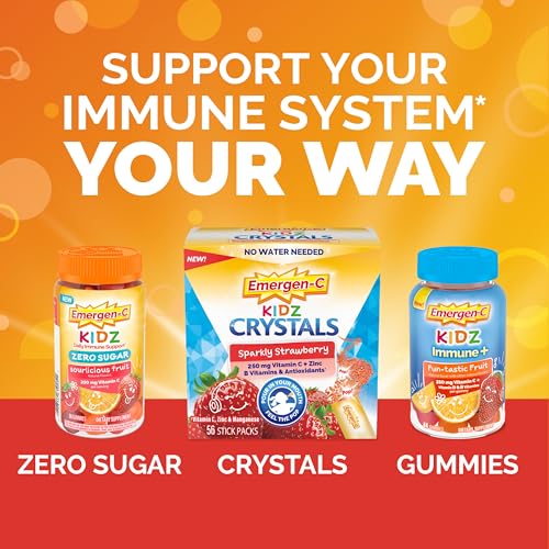 Emergen-C Kidz Daily Immune Support (1) Dietary Supplements for kids are an easy and delicious way to support your child's immune system and energy (1). Emergen-C Kidz gummies offer everything you love about original Emergen-C gummies, but formulated especially for children. These gummies contain a variety of essential nutrients, including 250 mg of high potency vitamin C per gummy for immune system support and B vitamins to enhance energy naturally (1). These gummies come in fun, kid-approved berry flavors, plus they're gluten free, caffeine free and vegetarian. Give your child these dietary supplement gummies under adult supervision as directed. Emergen-C Kidz supplements come in a bottle of 44 gummies. Transform every day with vitamin C from Emergen-C. (1) This statement has not been evaluated by the Food and Drug Administration. This product is not intended to diagnose, treat, cure, or prevent any disease. :Satisfaction Guarantee If for any reason you are not satisfied with any GSK Consumer Healthcare product, GSK Consumer Healthcare will provide you with a reimbursement within 45 days of the date of purchase. Please note that because GSK is unable to control the quality of our products sold by unauthorized sellers, the Guarantee is not available for products purchased from unauthorized sellers due to potential quality issues outside GSK’s control. Please contact GSK Consumer Healthcare directly for more information