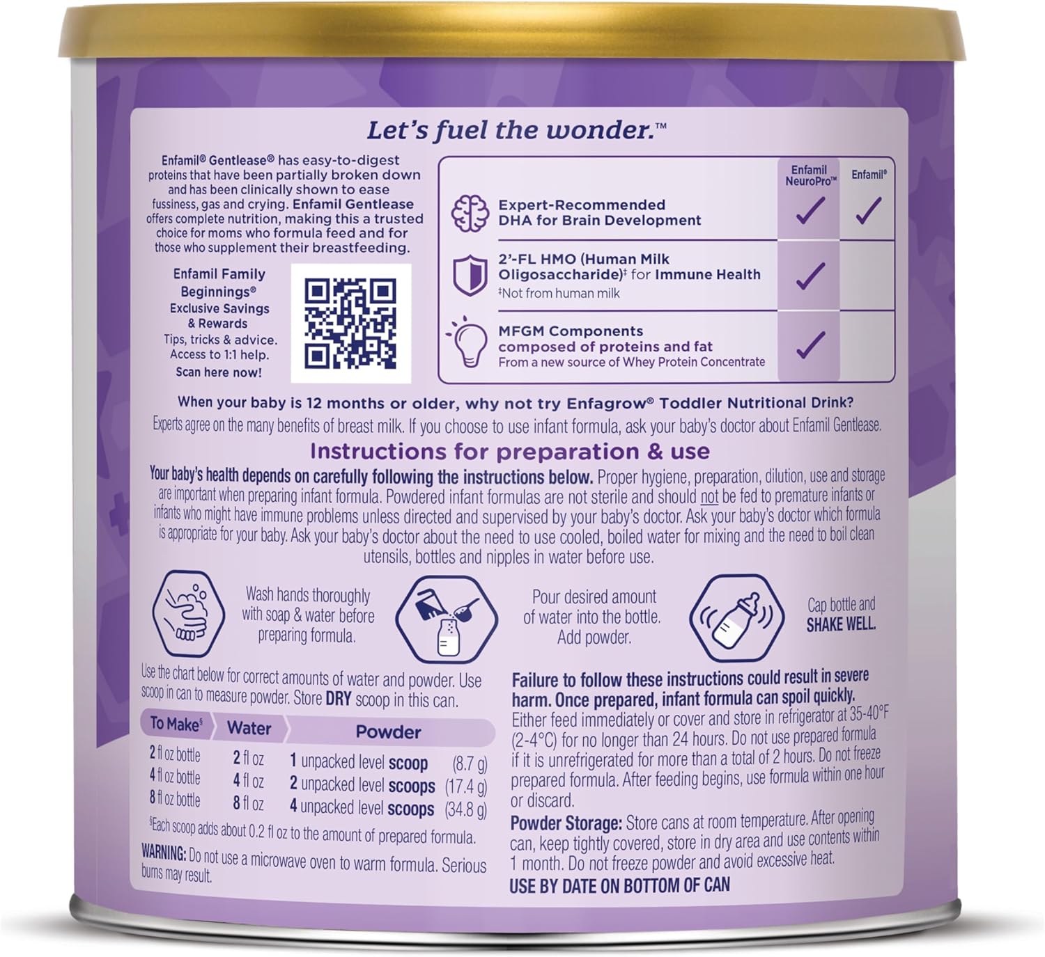 - NUTRITION DESIGNED FOR YOUR INFANT: Designed with care for babies up to 12 months, Enfamil Gentlease formula includes easy-to-digest proteins, vitamins & minerals.
