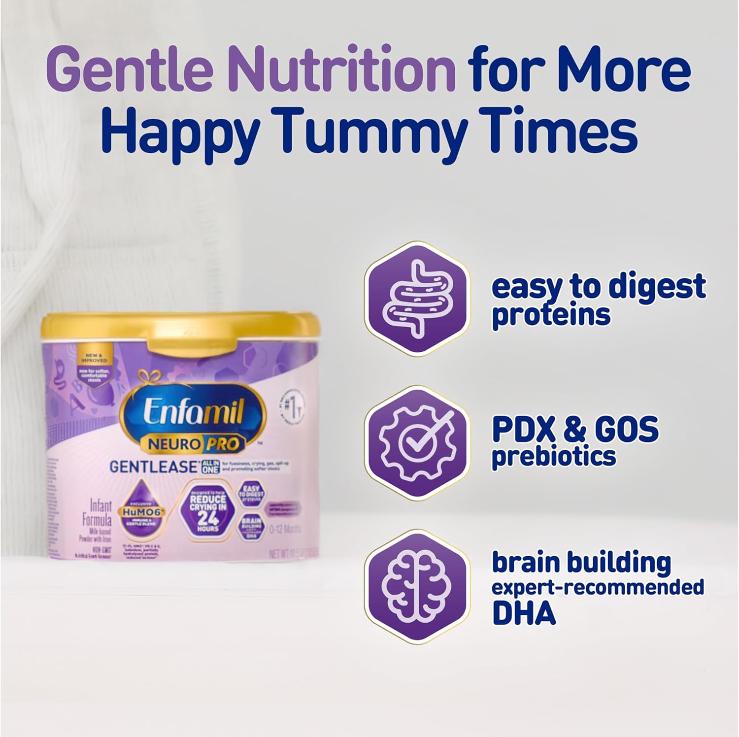 - HuMO6 GENTLE + IMMUNE BLEND§: Enfamil NeuroPro Gentlease features our exclusive HuMO6 gentle + immune blend, to support your baby's immune system, because your baby's well-being is our top priority