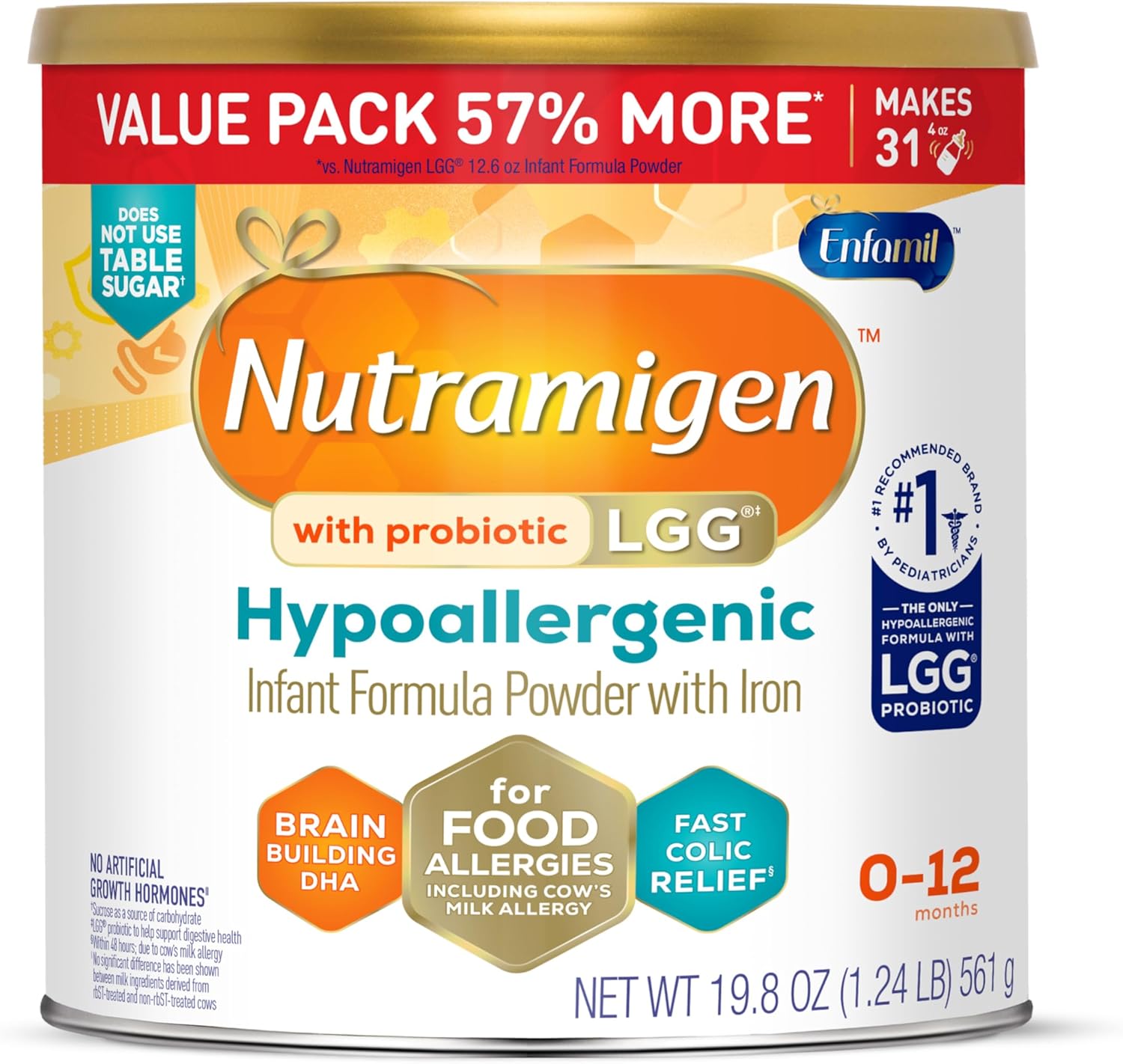 Enfamil Nutramigen Baby Formula, Hypoallergenic and Lactose Free Formula with Enflora LGG, Fast Relief from Severe Crying and Colic, Powder Can, 19.8 Oz (Pack of 1)