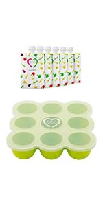 EVLA'S Baby Food Freezer Trays & Reusable Food Pouches Meal Prep Combo for Ba...