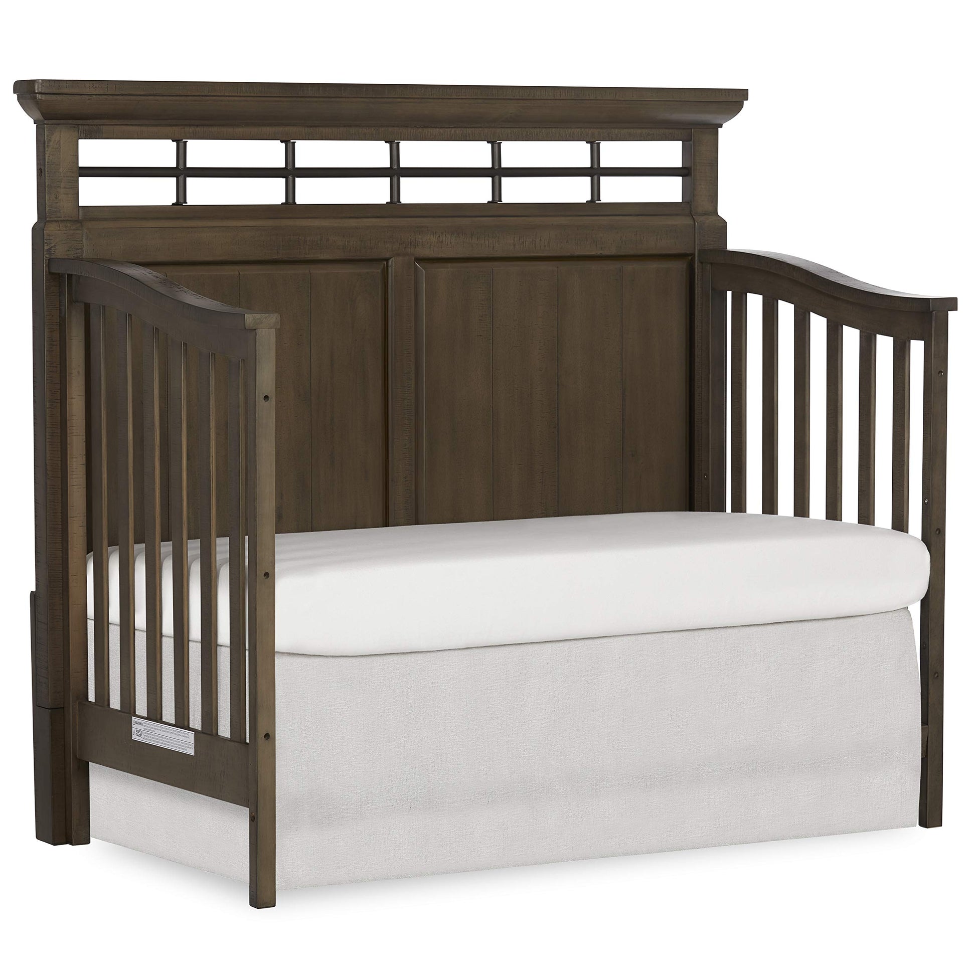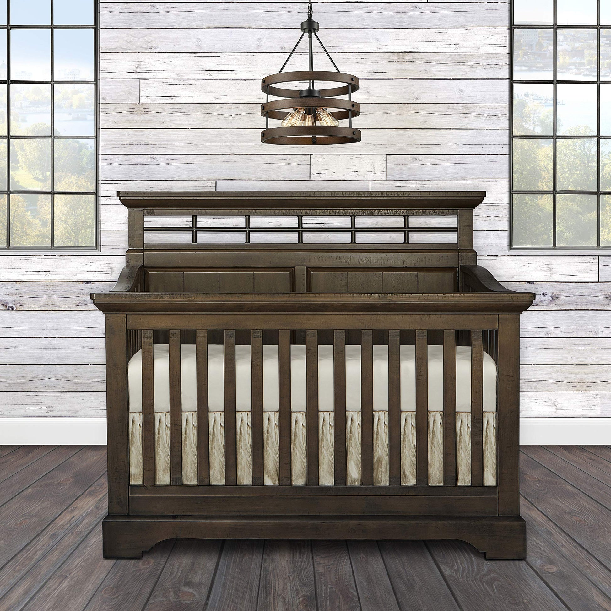 Evolur Empire 5-in 1 Convertible Crib with Metal Elements in Distressed Timber, Green Guard Certificated, Free Mattress