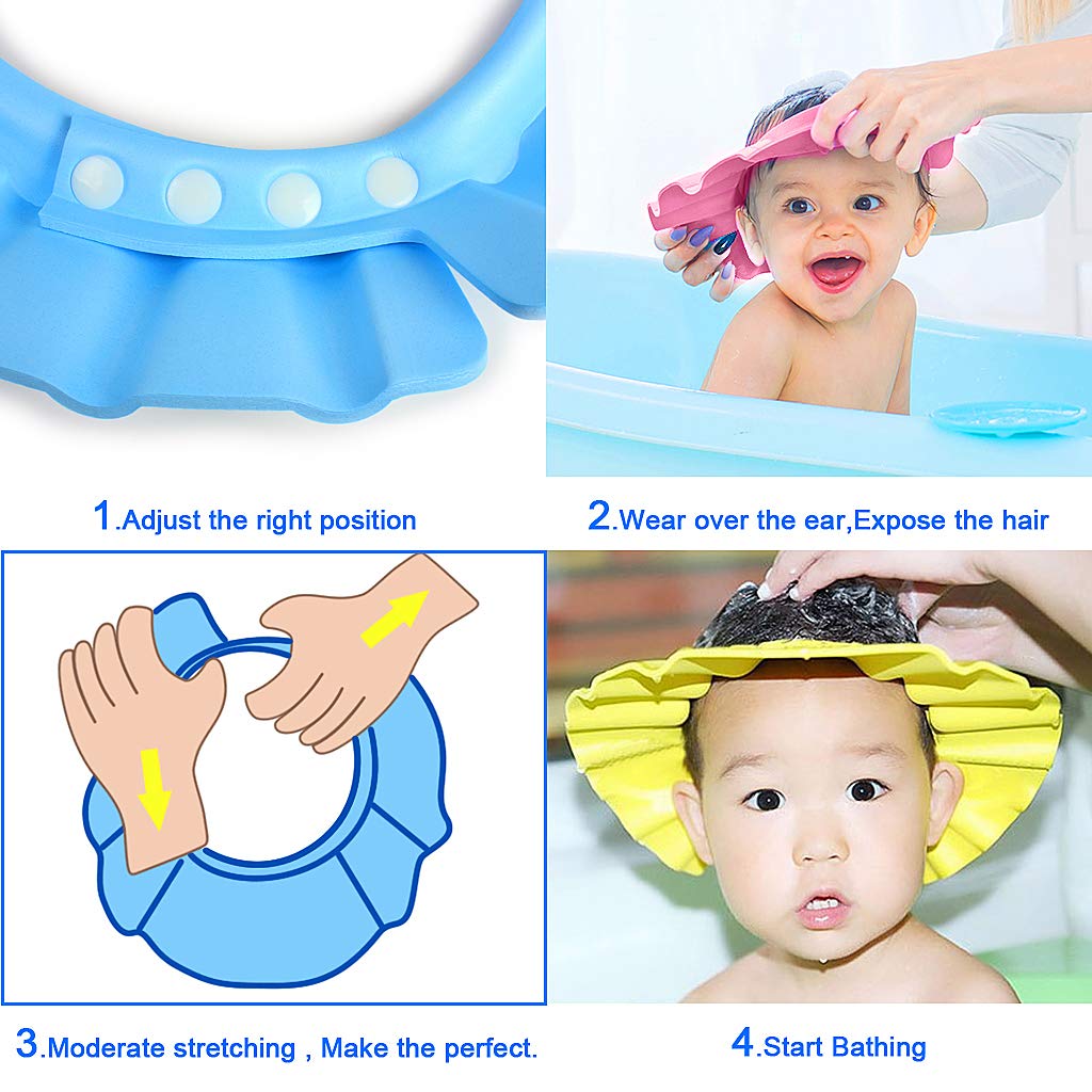 EWIN(R) 4pcs Soft Adjustable Baby Kids Children Shampoo Bath Bathing Shower Cap Hat Wash Hair Shield Hat