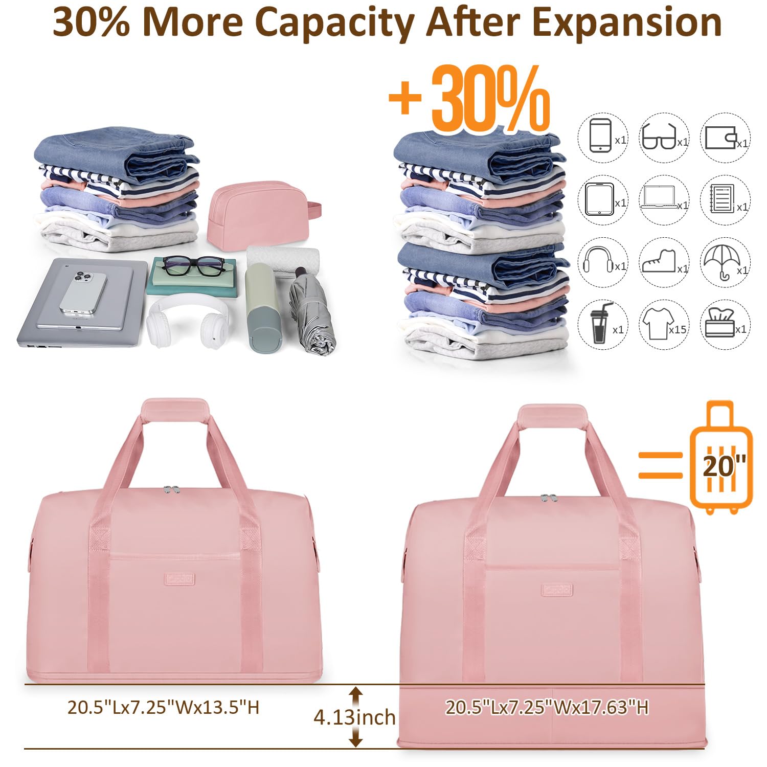 Expandable Travel Duffle Bags Weekender Overnight Bags for Women Men Hospital Bag for Women Labor Delivery with Toiletry Bag Waterproof