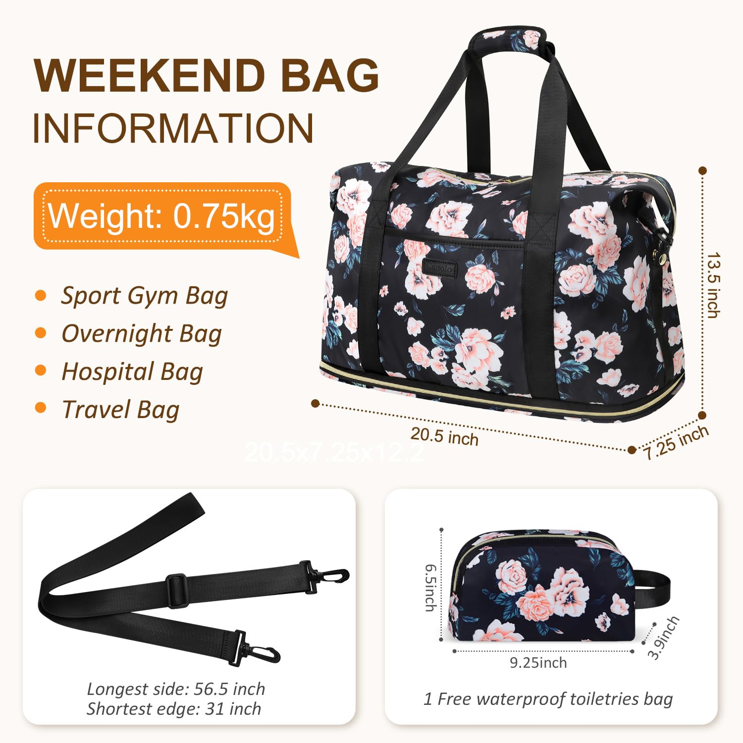 - Claim Your FREE GIFT Today – free toiletry bag. Spacious enough to store skincare, makeup, brushes, and travel-sized essentials, keep everything tidy (no more digging through chaos!). Suitable for women as a carry on duffle bag. This sleek toiletry bag is more than just a pouch – it’s a game-changer for jetsetters, weekend warriors, and beauty lovers alike.