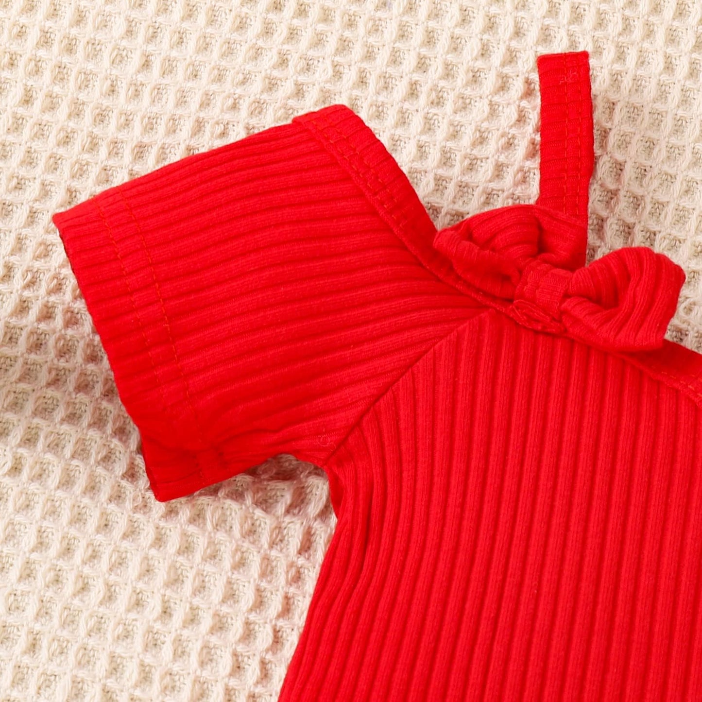 Baby Girl Clothes Suspenders Short Sleeve Ribbed Romper Flared Pants Set