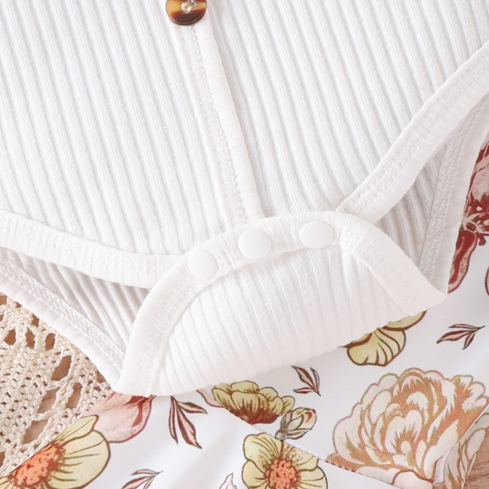 - Design: Baby girl classic clothes set, suspenders short sleeve solid color button design ribbed romper tops+ matching with floral print/ leopard print flared bell-bottom pants, Bell bottom outfits for baby girls, super fashion and adarable, perfect for baby girl spring/summer daily wear.