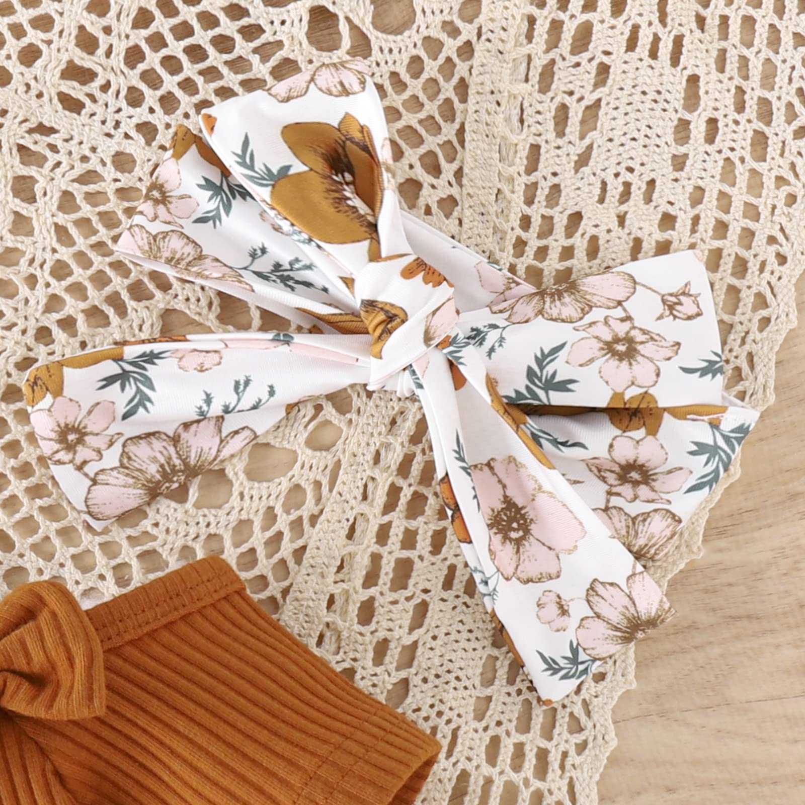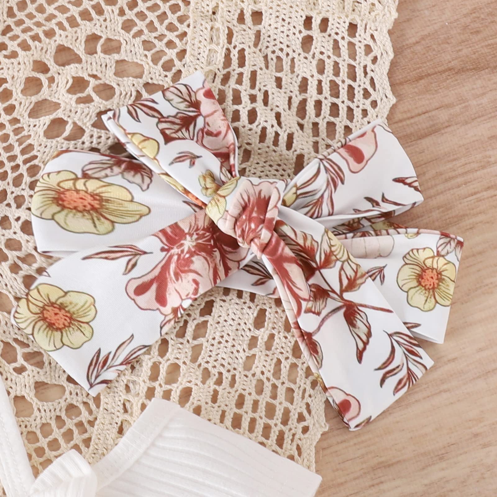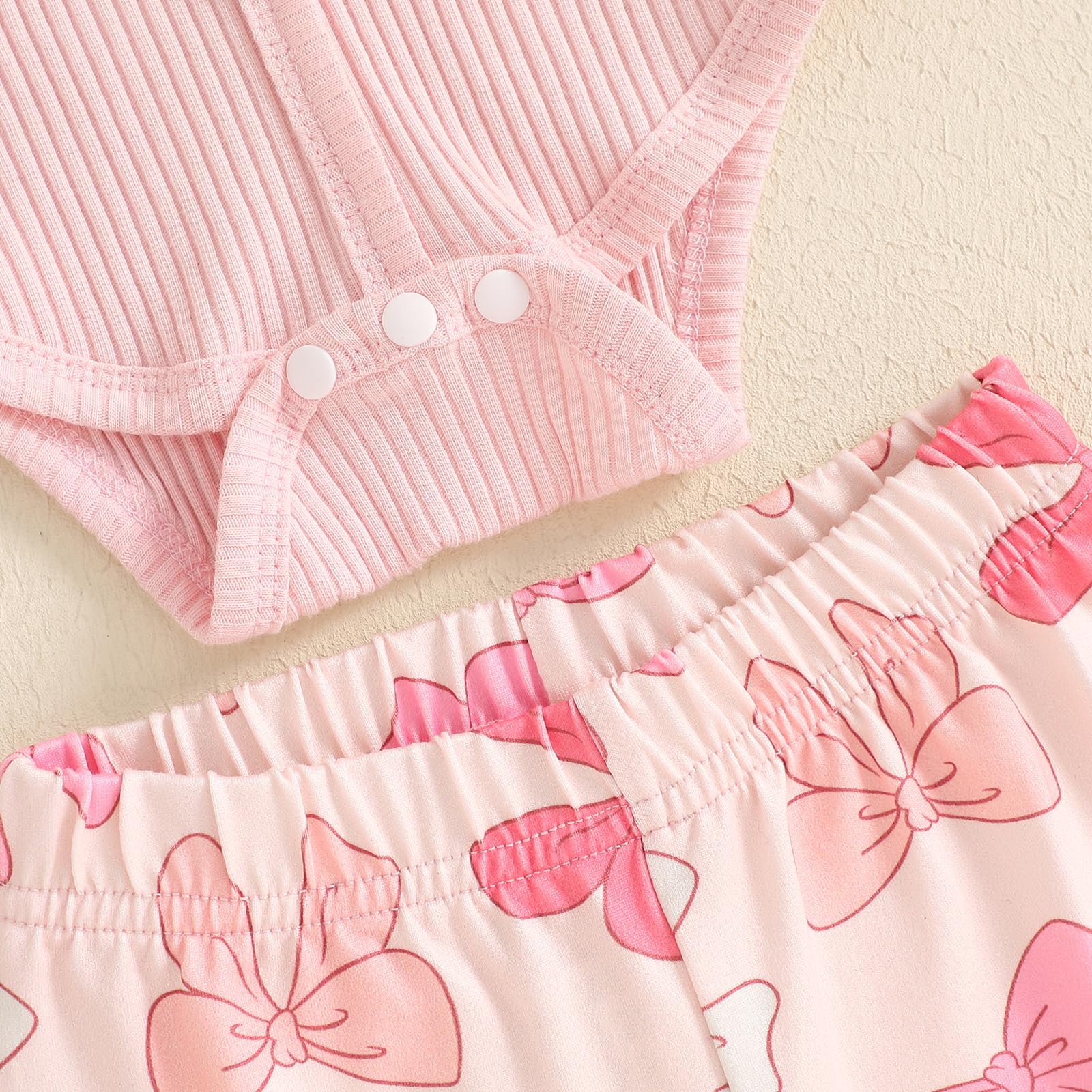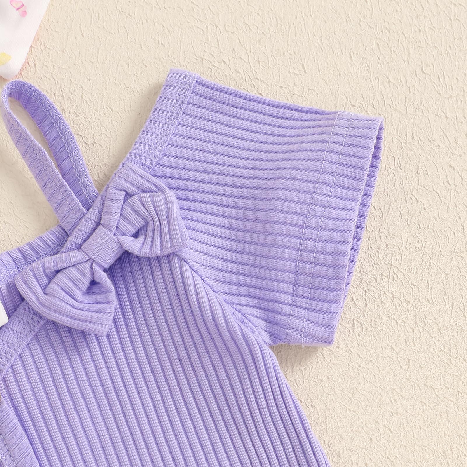- Package included:1Pc Romper+1Pc Flare pants+ headband. 3Pcs Baby Girl summer clothing sets.Machine washable, hang dry, do not bleach.