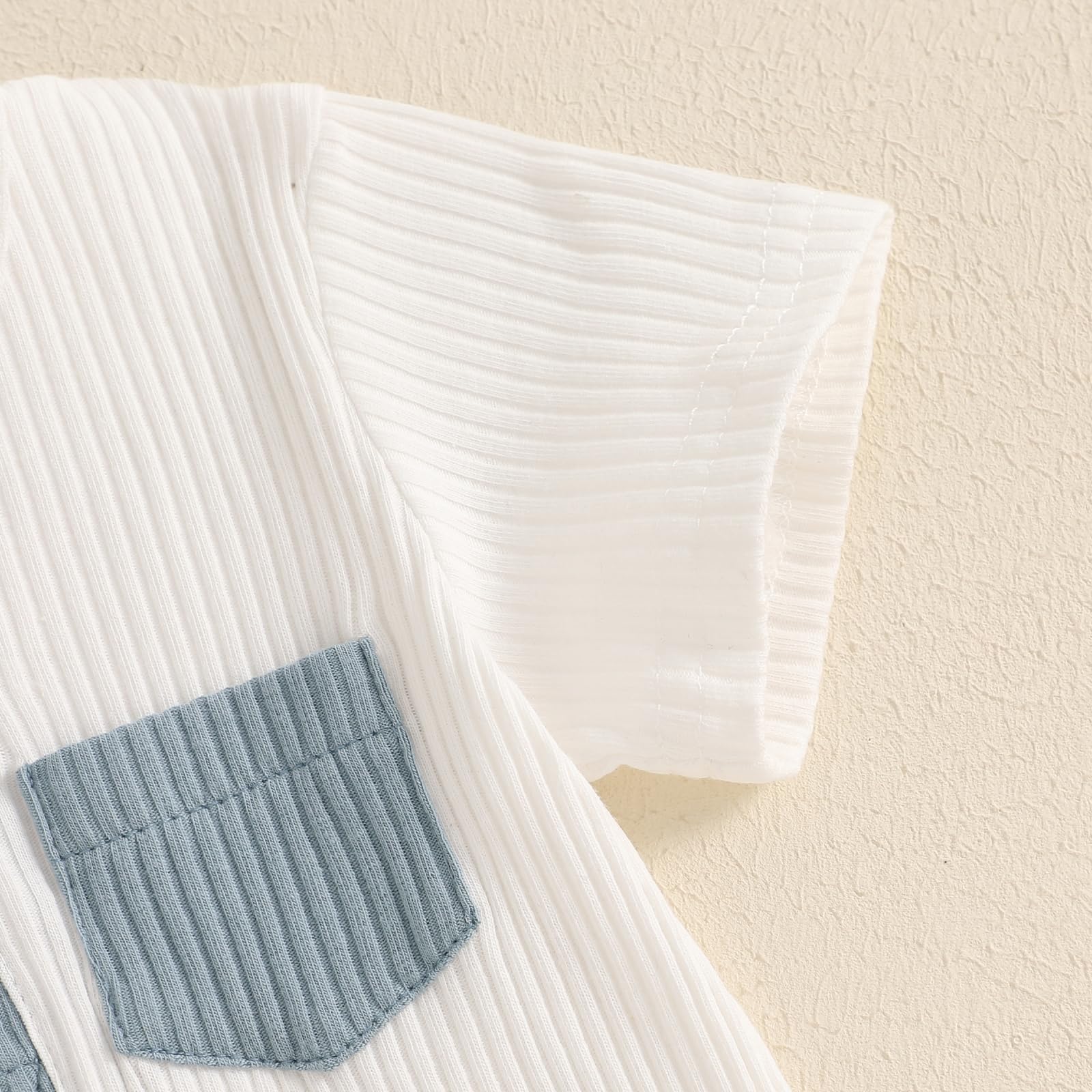 Baby boy summer outfits, newborn short sleeve romper, infant knitted ribbed set, 0-18 months baby clothes, baby contrast color romper set, button collar baby outfit, baby casual ribbed knit set, neutral baby clothing, cool baby boy summer set, lightweight infant wear, baby boy clothes 0-3 months, 3 month boy clothes, 3-6 month boy clothes, 6 month boy clothes, 12-18 month boy clothes, trendy boy’s ribbed outfit, photoshoot baby clothes, gift-ready infant apparel, unisex neutral baby set