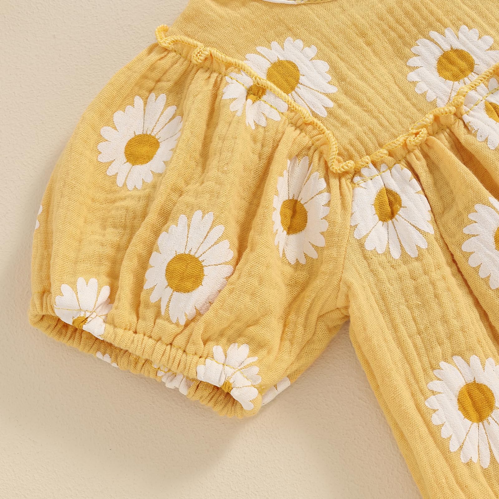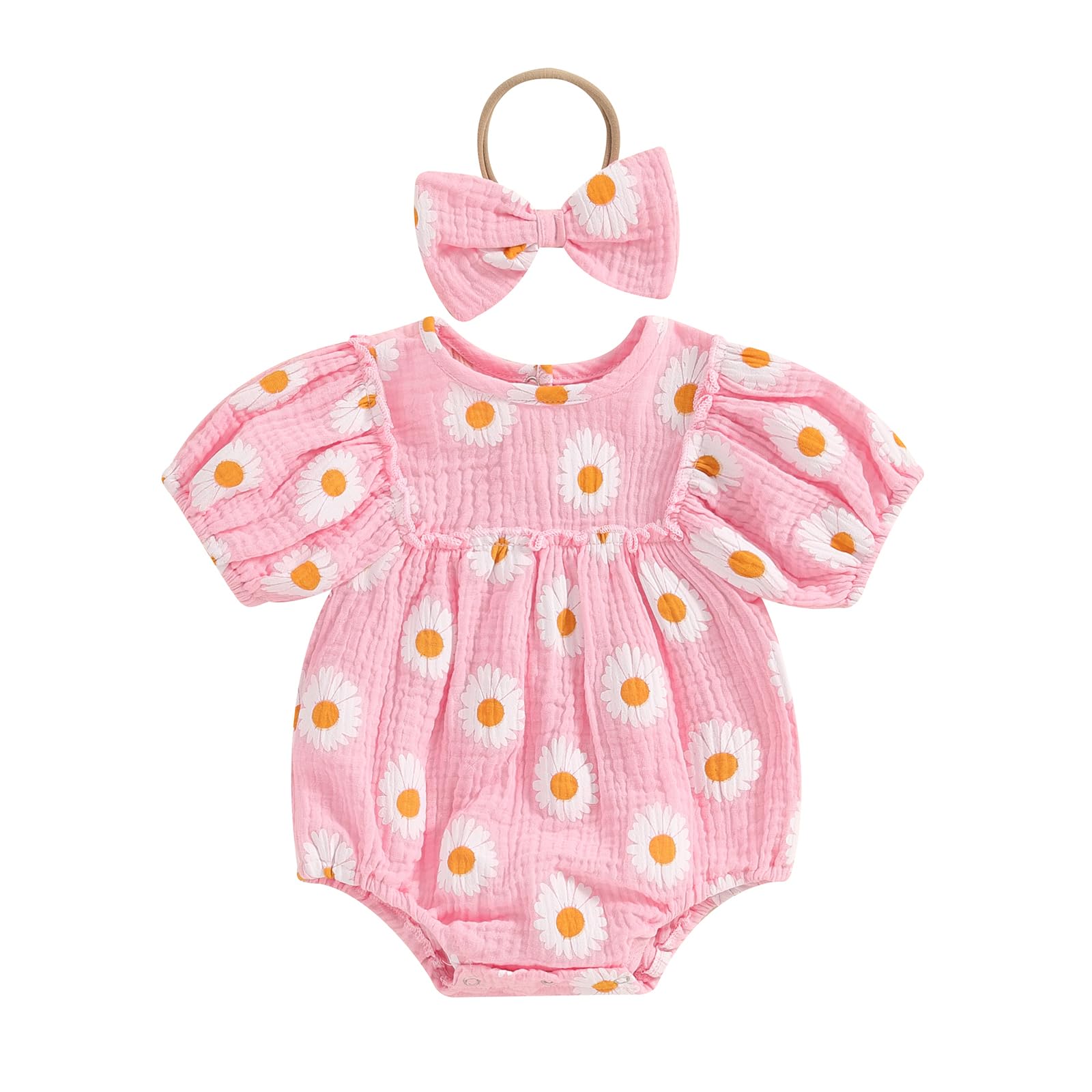 - MATERIAL: This newborn baby girl clothes infant daisy bubble rompers are made of 95% cotton and 5% polyester, ultra soft, skin-friendly, durable and not easy to deform, good breathability, and comfortable to wear.super comfy summer clothes for your little one.