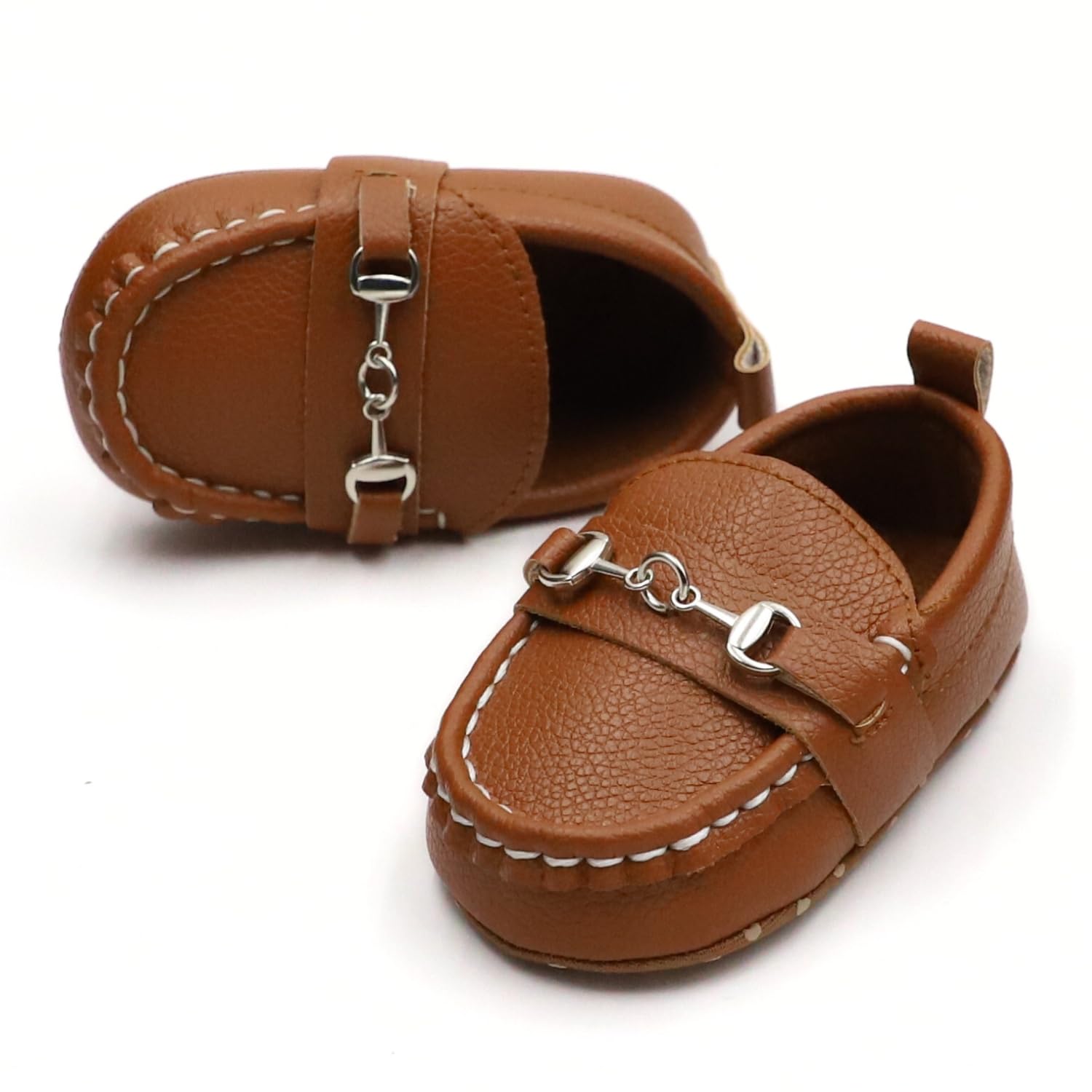 - Fashionable Appearance: Designed with a soft PU upper that is smooth to the touch, these baby loafer shoes has a striking horse-bit accent that adds a cool touch to your look