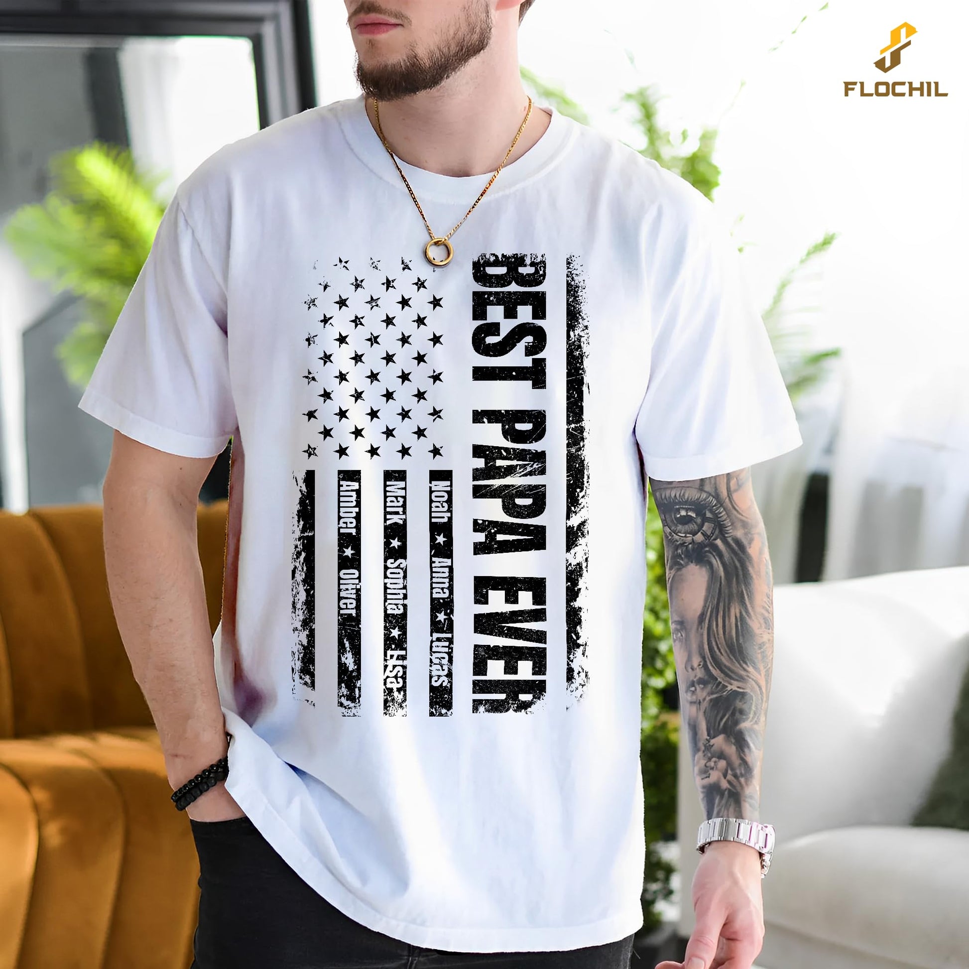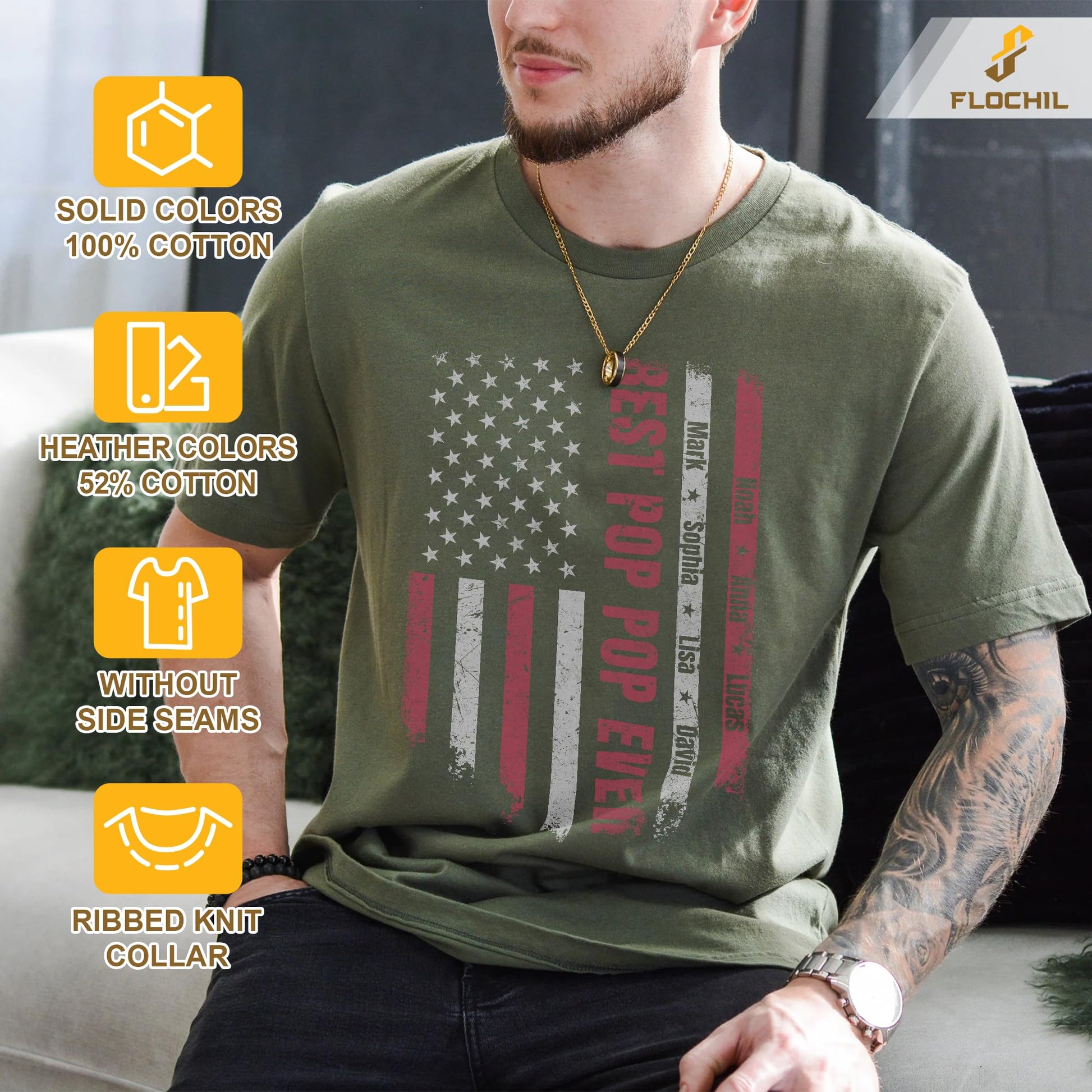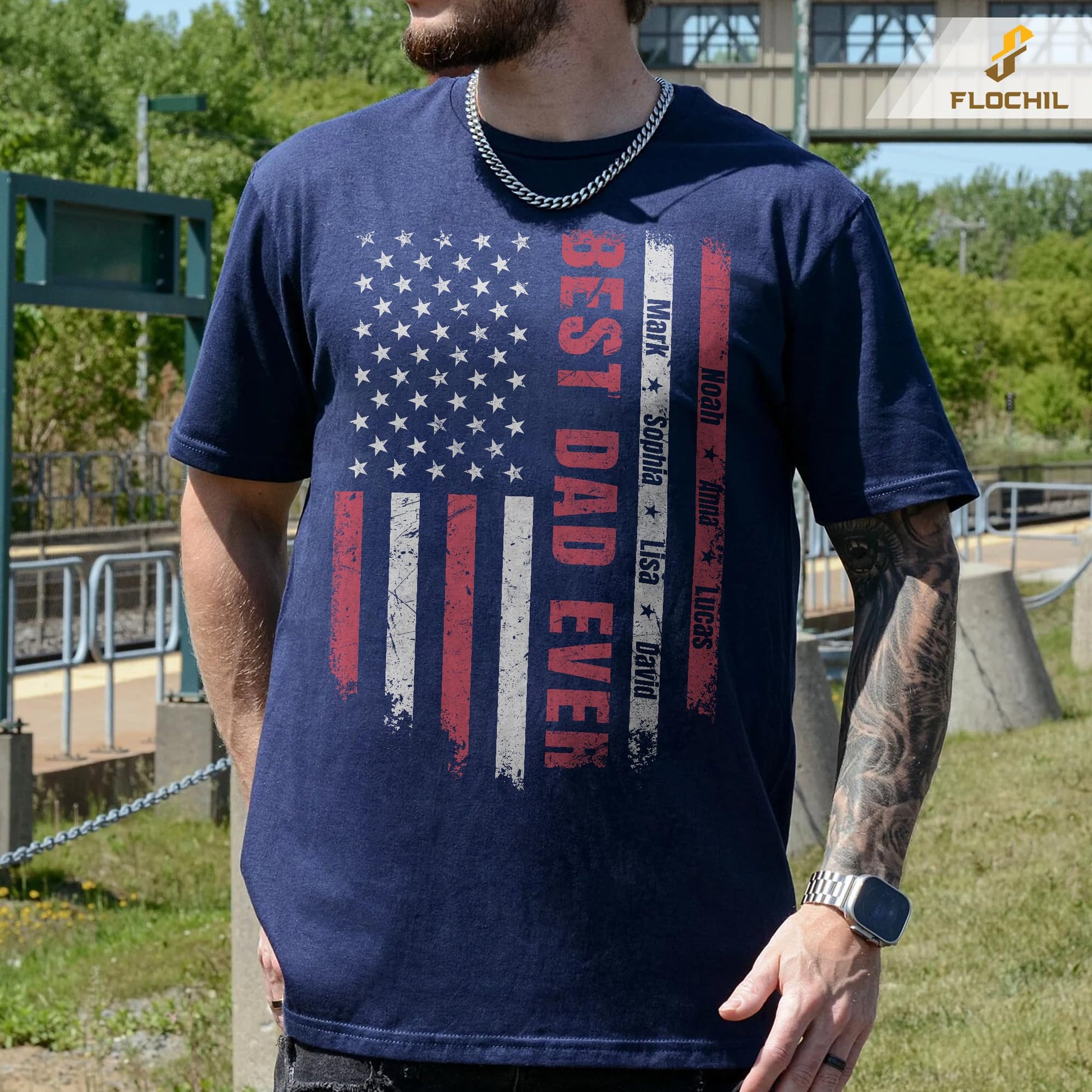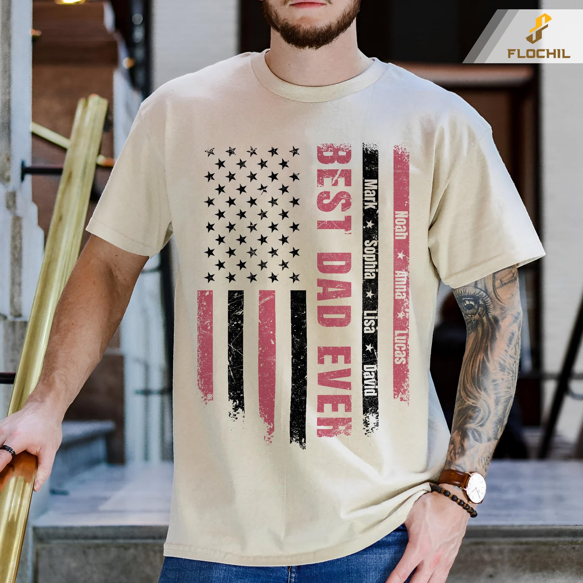 FLOCHIL Personalized Dad Shirt for Men, Custom With Kids Names, Fathers Day T Shirt, Gifts