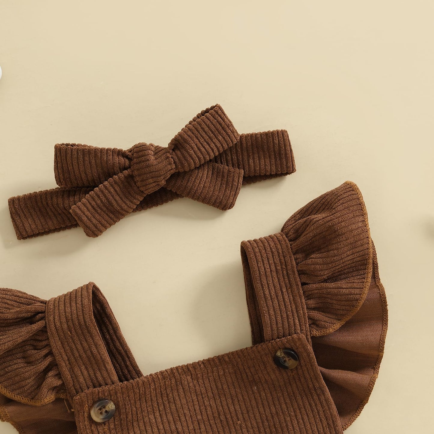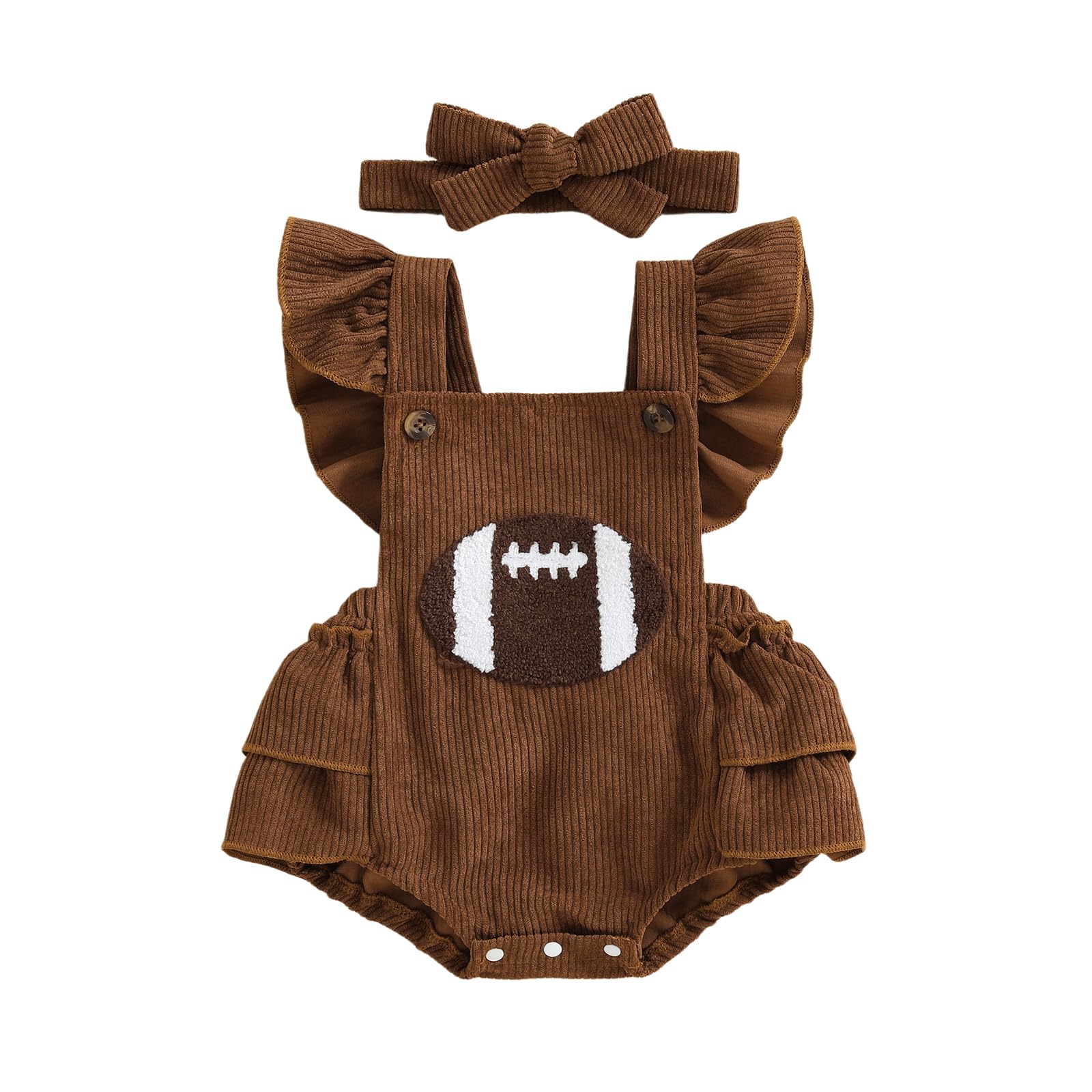 Football Baby Girl Outfit Embroidery Football Romper Ruffle Sleeve Corduroy Bodysuit Overalls Game Day Clothes