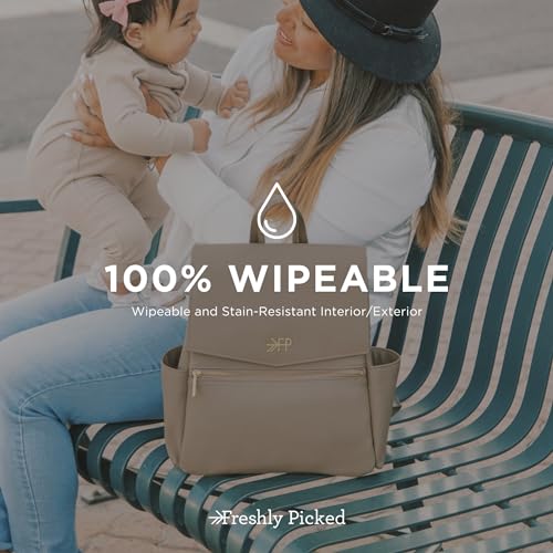 - Stylish Diaper Bags for Women: Crafted from premium vegan leather that's also wipeable, the Mini II diaper backpack boasts custom hardware, sturdy YKK zippers, and wipeable a nylon interior. It's the smaller version of the Freshly Picked Classic