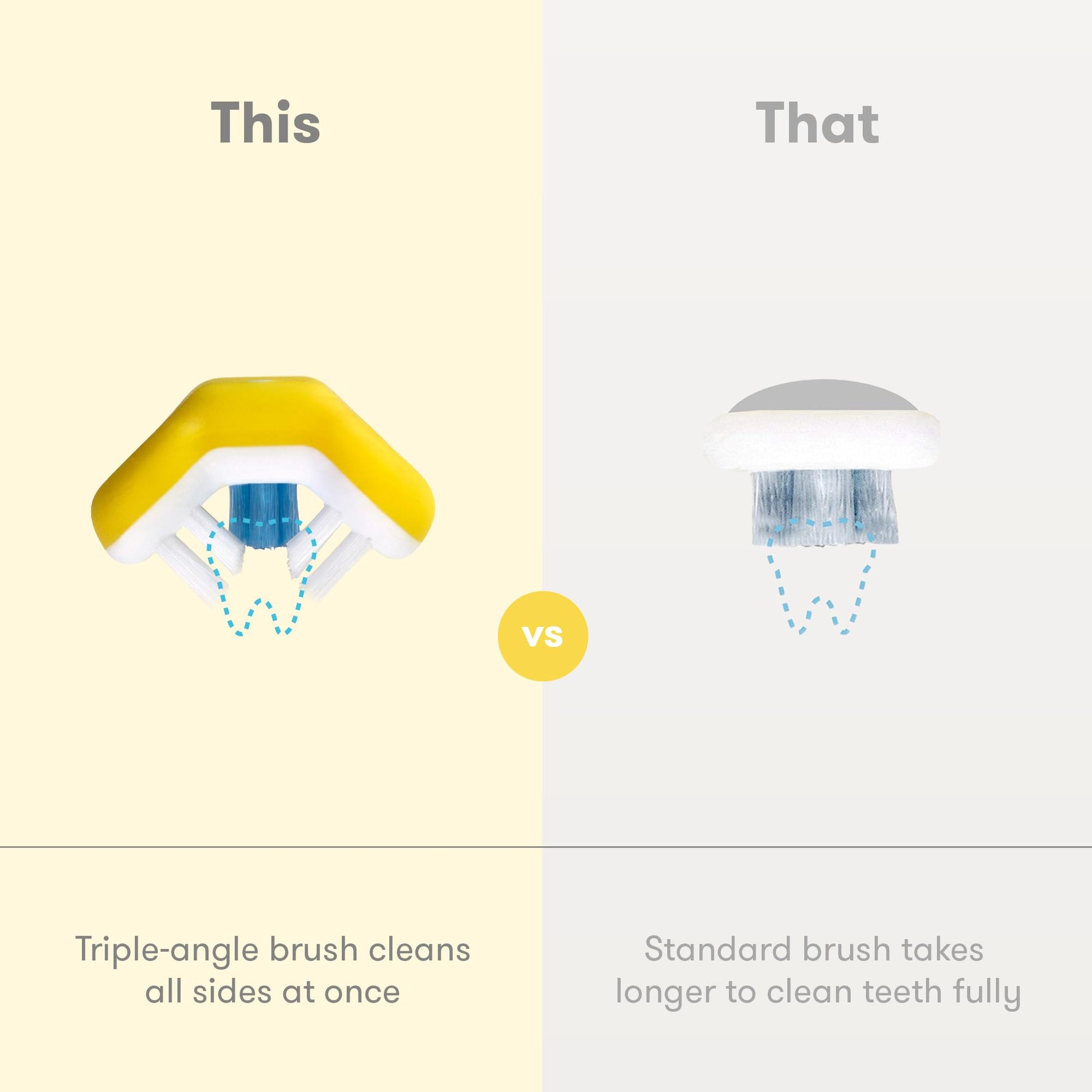- TRIPLE-ANGLE BRUSH: Dentist-recommended, unique brush head cleans all sides of the tooth all at once