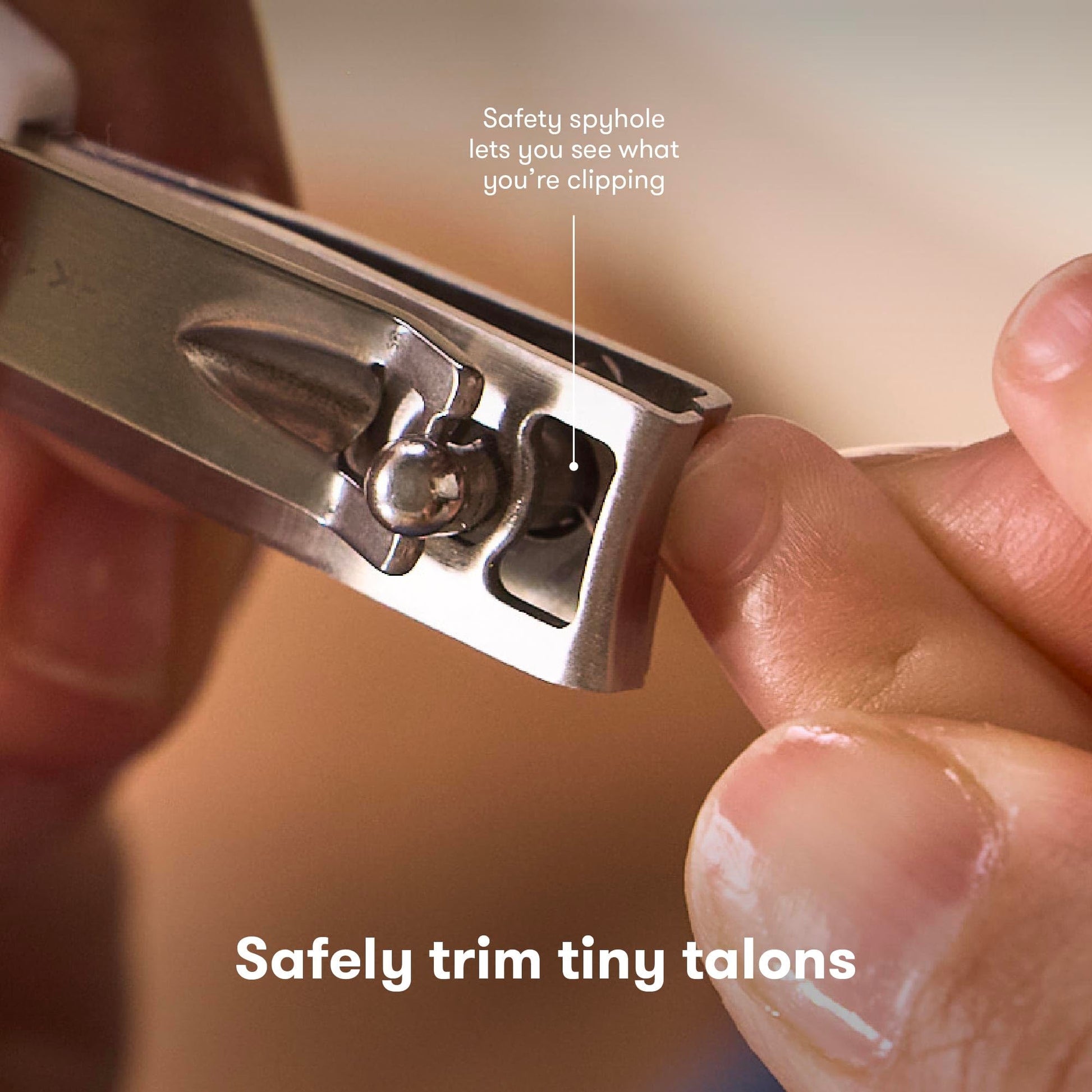 - CLAW-TRIMMING: SnipperClipper Set includes a uniquely designed nail clipper for babies with a safety spyhole to see exactly what you're cutting. Its curved, overlapping blades allow for safe, smooth, & silent snipping. Perfect for newborn nails.