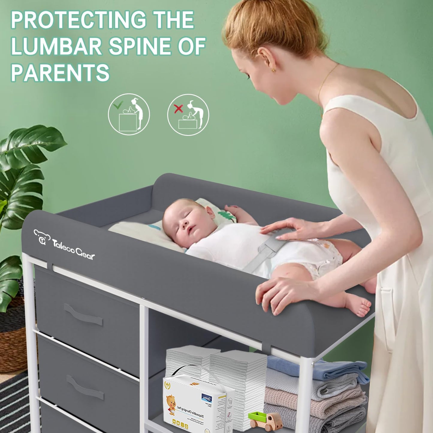- ✔NO MORE BACK PAIN: Our diaper changing station will save you from a lot of back pain as it is designed at a proper height. No more bending or kneeling eve. G TALECO GEAR changing table that could do great help for baby nursery, changing diapers, dressing and massaging for babies, providing maximum convenience for parents.