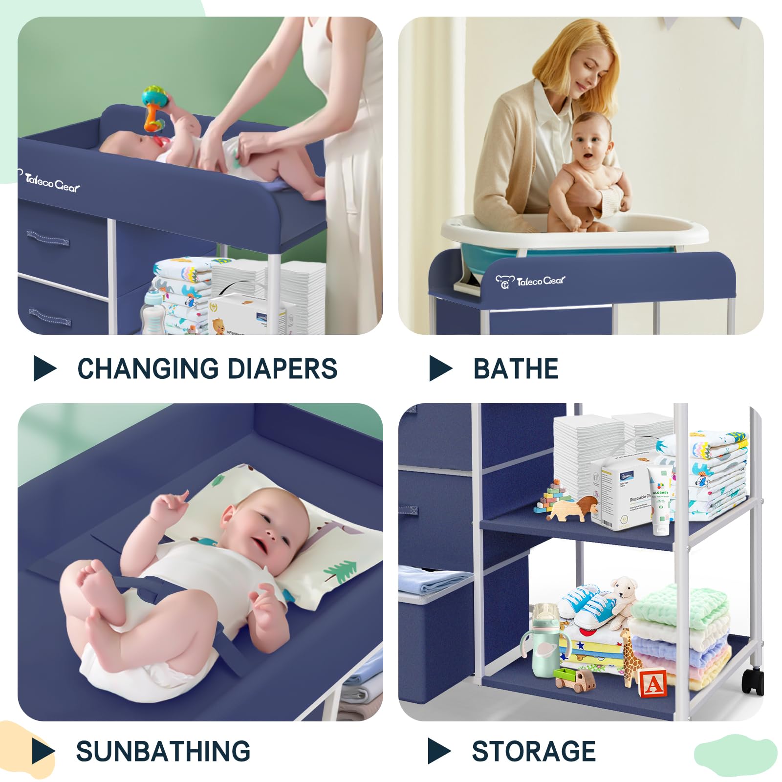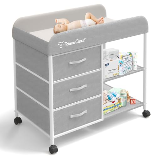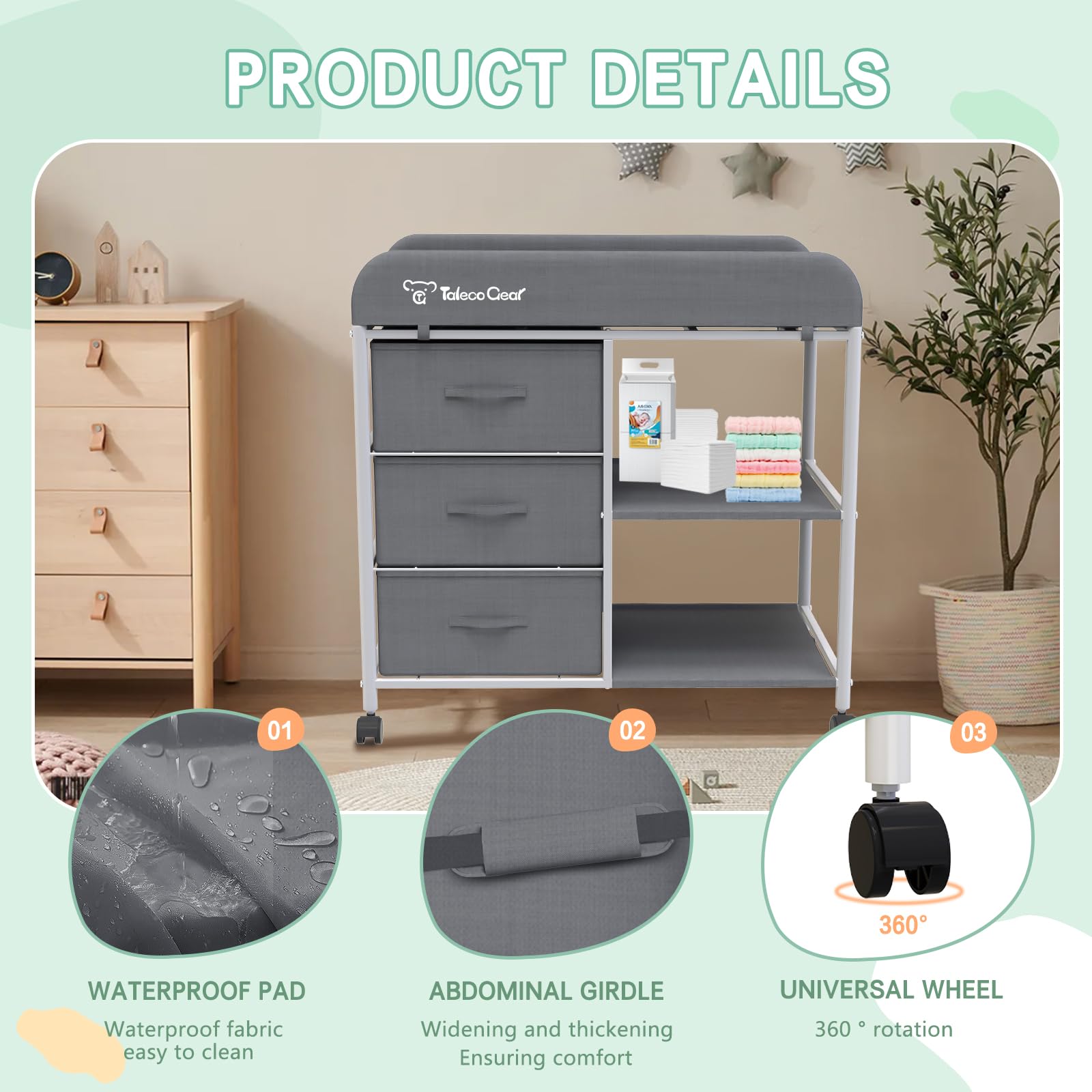 G TALECO GEAR Baby Changing Table, Portable Changing Table, Diaper Changing Station with Waterproof Pad, Changing Table Dresser with 3 Storage Baskets, Mobile Nursery Organizer for Newborn Essentials