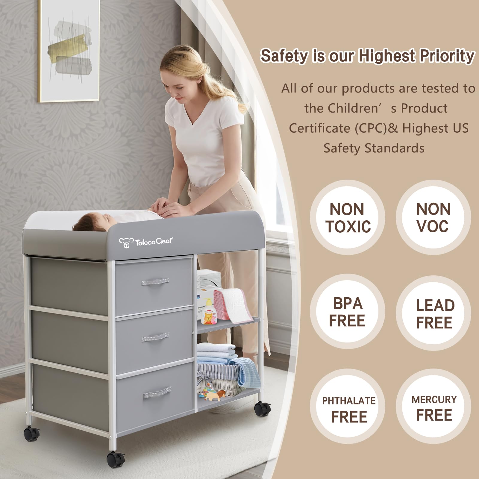 - ✔US ASTM & CPSIA APPROVED: G TALECO GEAR baby changing table has passed CPC certified to meet or exceed all safety standards set by ASTM. It is made of non-toxic materials phthalate-free, non-toxic, BPA-free, and non-allergenic.If you have any questions, please do not hesitate to contact us!