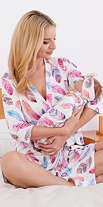 Mommy and me robe and swaddle set is made of breathable and stretchy fabric for extra stretch so you never feel confined by it