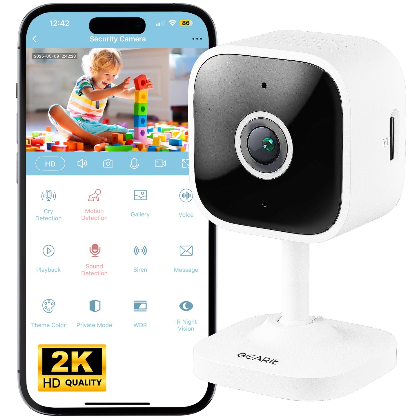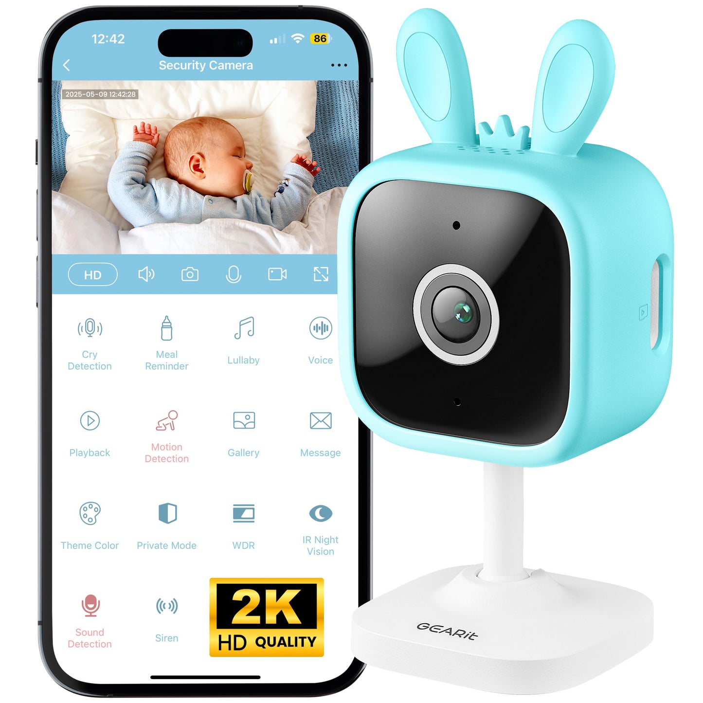 GEARit Baby Monitor with Camera & Audio 2K Video with Motion & Crying Detection, 2 Way Audio Easy WiFi Setup, Remote Monitoring - Easy to Set Crib Monitor with Adjustable Stand