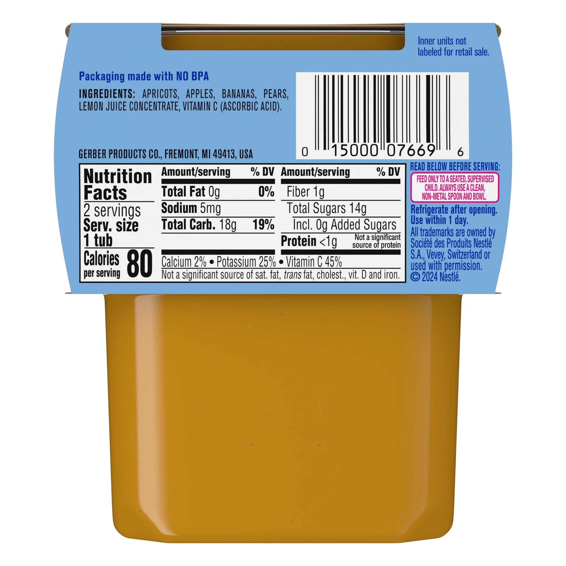 Gerber Stage 2 Baby Food, Banana Blackberry Blueberry Puree Tubs are a premium choice for your child’s early stages. Crafted to help support their nutritional needs, along with meeting the busy lifestyle needs of caretakers and parents. Each baby puree tub comes in a portable, easy-to-store format – making it perfect for life’s busy moments. This stage 2 baby food puree is designed for babies who are 6 months + and are ready to explore new textures and flavors. Gerber understands the importance of providing wholesome ingredients during the crucial developmental stages of your child's life -- that’s why our baby puree is Non-GMO Project Verified. Gerber baby puree is ideal for parents who seek a convenient and high-quality option in their baby's diet. These tubs need to be refrigerated after opening and must be used after 1 day.