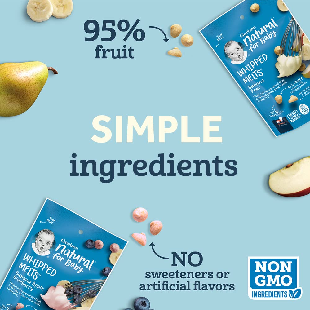 - NO ARTIFICIAL FLAVORS OR SWEETENERS: These baby snacks have no artificial flavors and no artificial sweeteners. So, you and your little one can feel good about Gerber baby melts