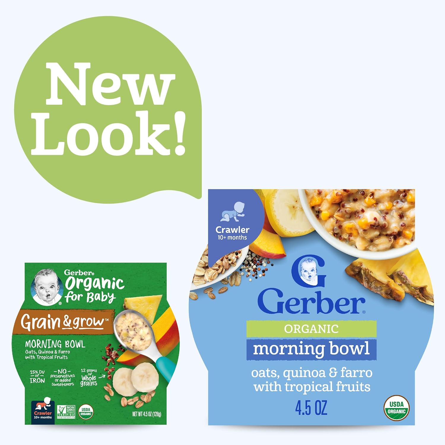 Gerber Organic Grain & Grow Morning Bowl, Oats, Red Quinoa & Farro with Tropical Fruits, 4.5 Ounce (Pack of 8)