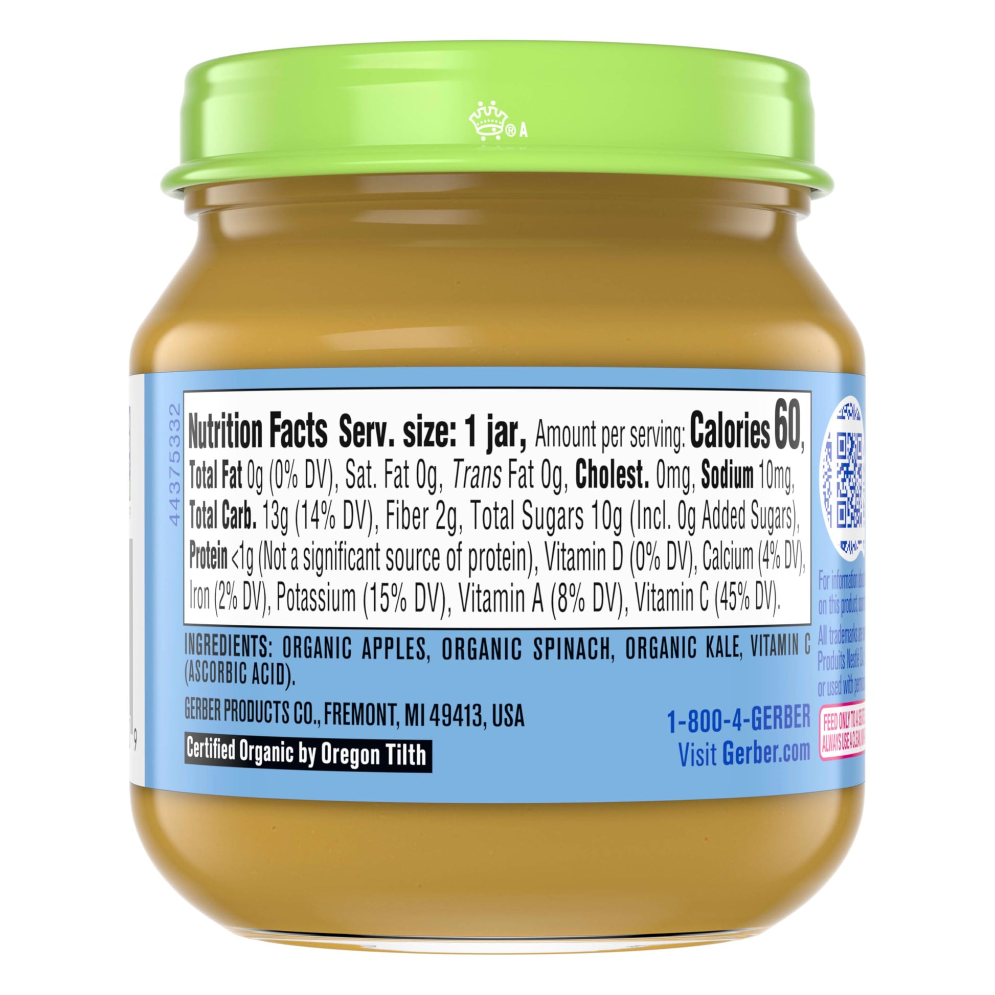 Gerber Stage 2 Baby Food, Organic Apple Spinach with Kale Jar, Fruit & Veggie Puree, Vitamin C, Non-GMO, Baby Food Puree Jars Glass