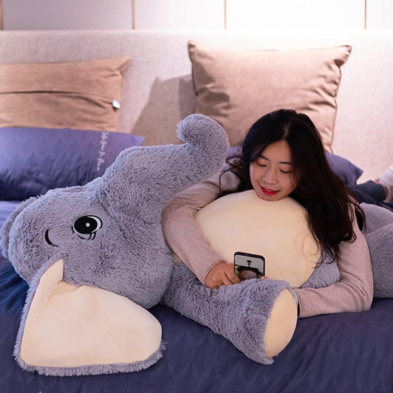 - 【Multifunctional Elephant Plush】This giant elephant plush is soooo soft and extremely huggable! The colors are pretty and the elephant ears and trunk are perfectly proportioned as is the amount of stuffing... such a great cuddle buddy that also adds a touch of happiness to your bedroom! It's also the perfect cuddly gift for bed, the couch and the floor.