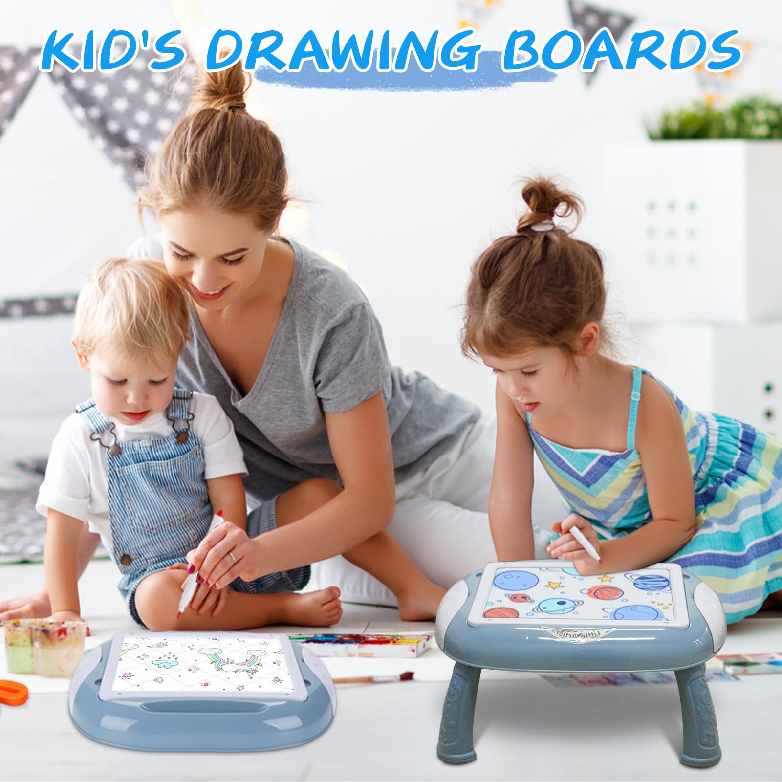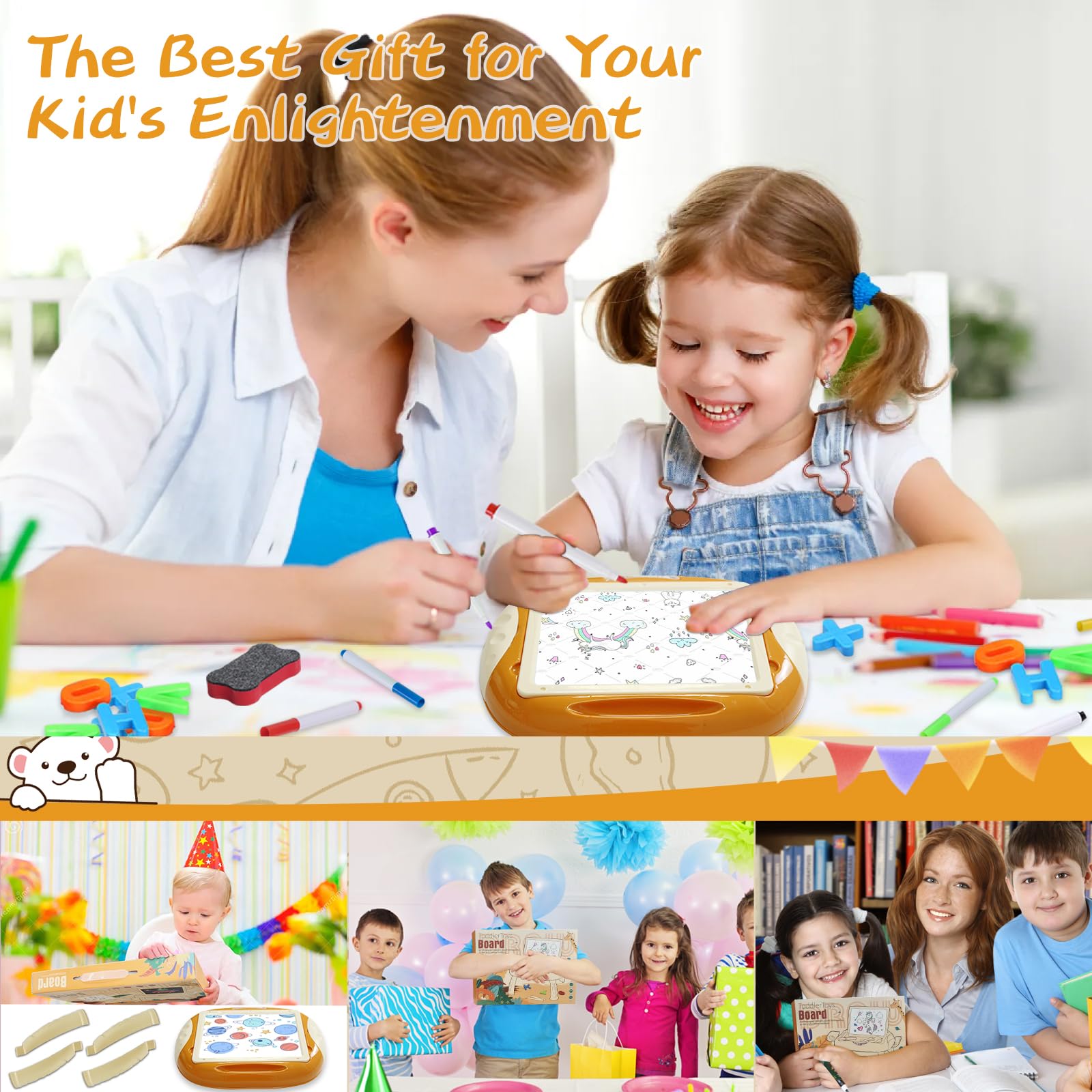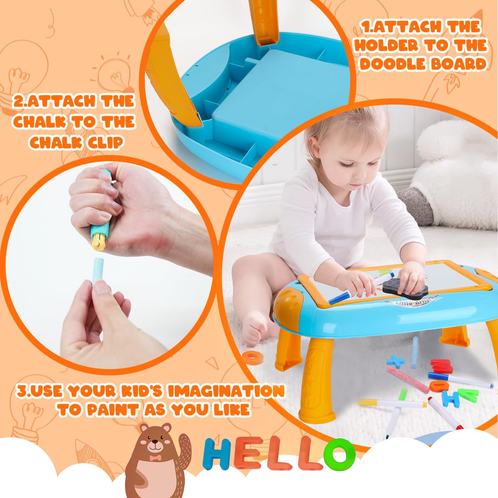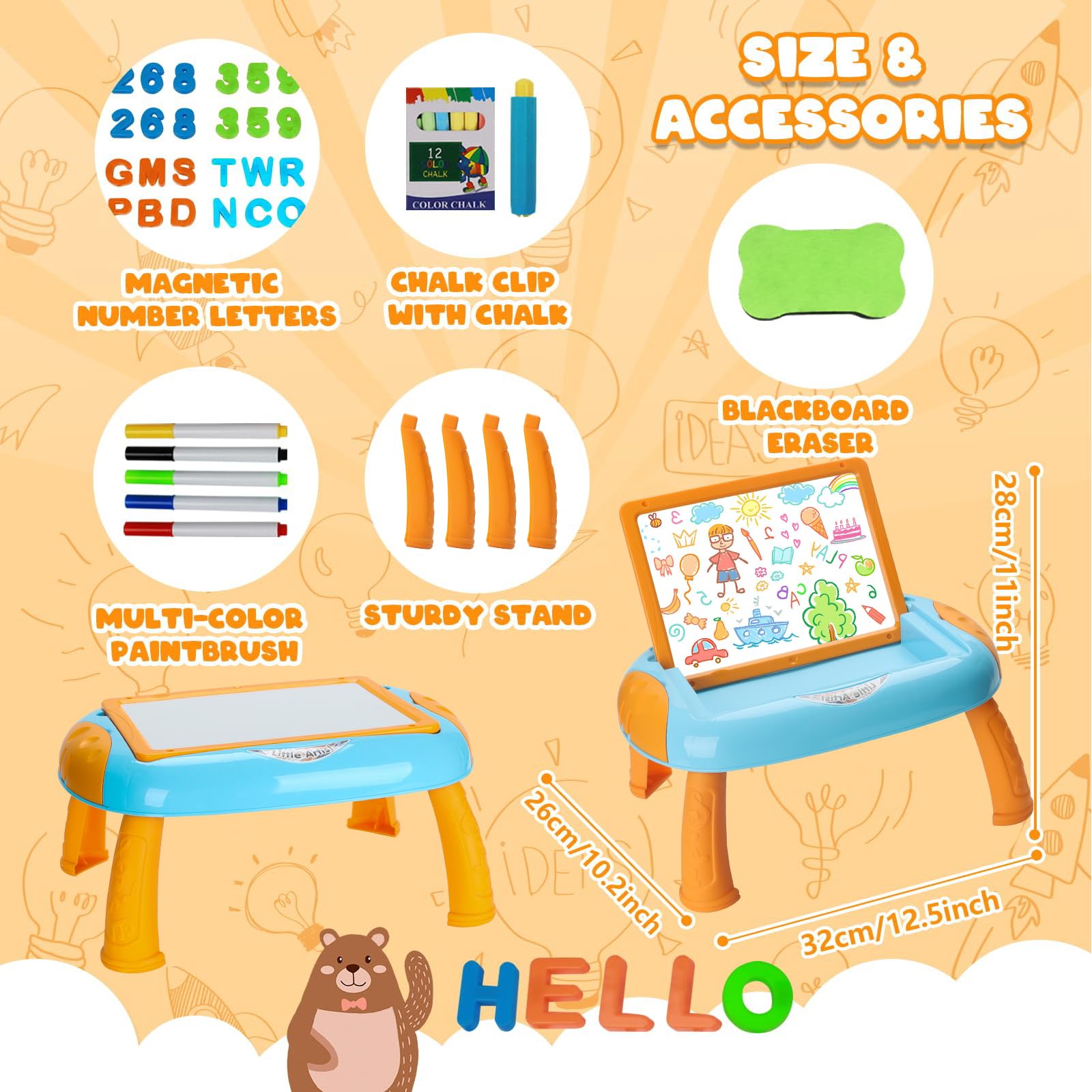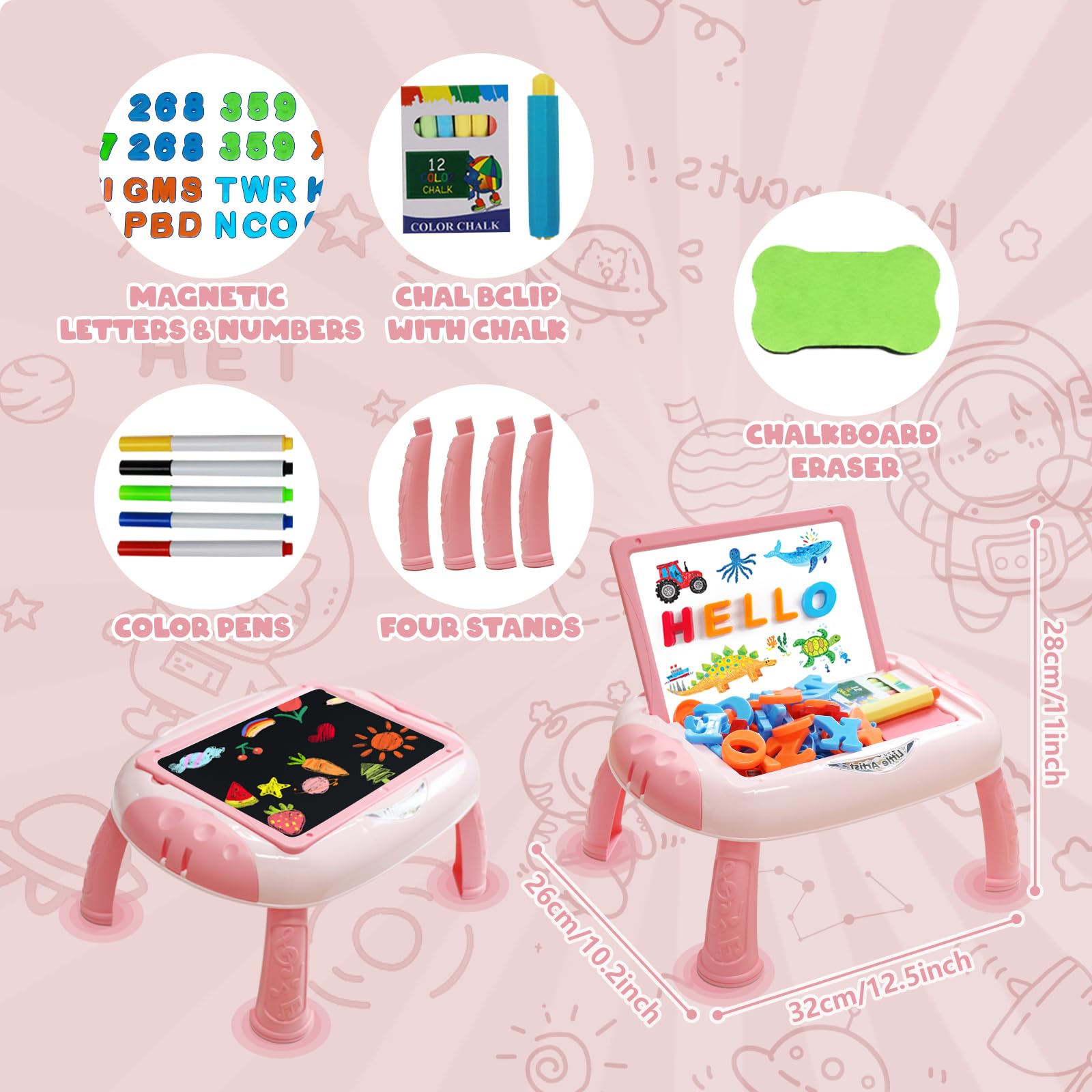 - 🎨【Versatile Accessories To Inspire Kid's Creativity 】- The kid's coloring drawing table comes with 1 chalk holder, 1 blackboard eraser, 5 colored pens, 12 chalks, 25 number templates and 26 English alphabet templates. Kids can learn and draw through different combinations of these accessories, and the inside and sides of the doodle table provide space for accessories, which is more fun than drawing on paper.
