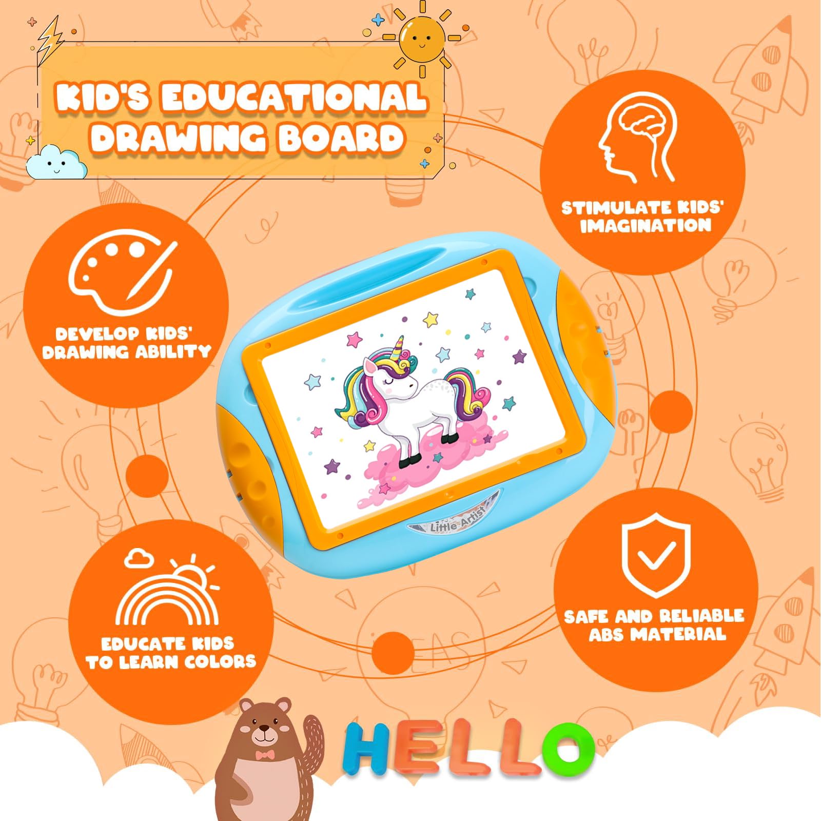 - 🎨【Drawing Board For Toddlers 1-2】 - This doodle drawing board specially designed for toddler aged 1-2 is about 12.5 IN length, 10.2 IN width and 11 IN height, just the right size for kids to play with. The unique double-sided design provides endless creative opportunities for kids, helping them learn math and word recognition.This drawing pad is not only a toys for 1 year old, but also an art tool to enlighten kid's intelligence. Let your baby grow up happily in an artistic atmosphere!