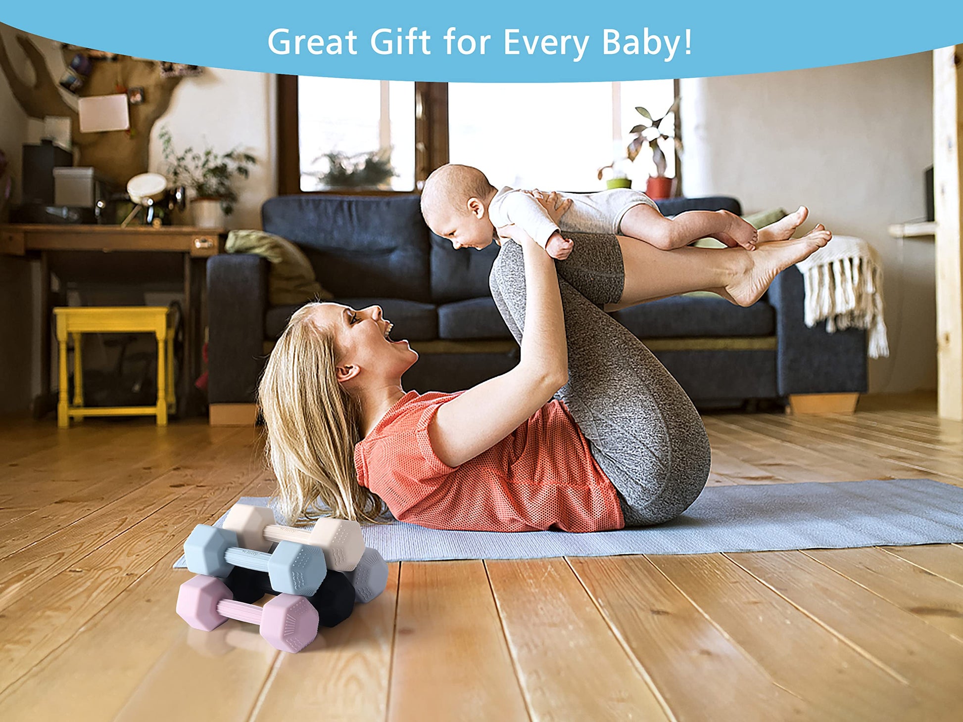 Giftty Baby Dumbbell workout toys are not too heavy, easy to grasp for your baby to play and practice their muscles.