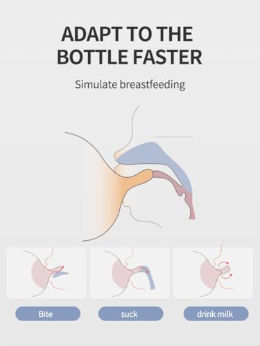 - ★Transition from Breast with Breast-Shaped Nipple: With a breast shape, the nipple mimics the shape and feel of a breast to give babies a sense of satisfaction and security to ease the transition from breast to bottle; Made of food-grade silicone, the nipples are made tens of thousands of pulling experiments and can protect baby’s gums well;