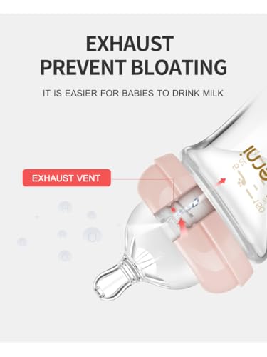 Glass Baby Bottles,Anti Colic Breastfeeding Bottle with Natural Response Nipple Size S,Wide Neck Slow Flow Baby Bottle for Baby,Newborn,Preemie 0-3 0-6 Month,BPA Free (Pink, 1 Pack, 5 Ounce)
