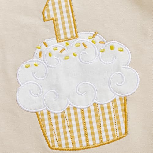 Baby Boys First Birthday Romper, Long Sleeve Embroidery Cupcake Casual Autumn Jumpsuit Clothes
