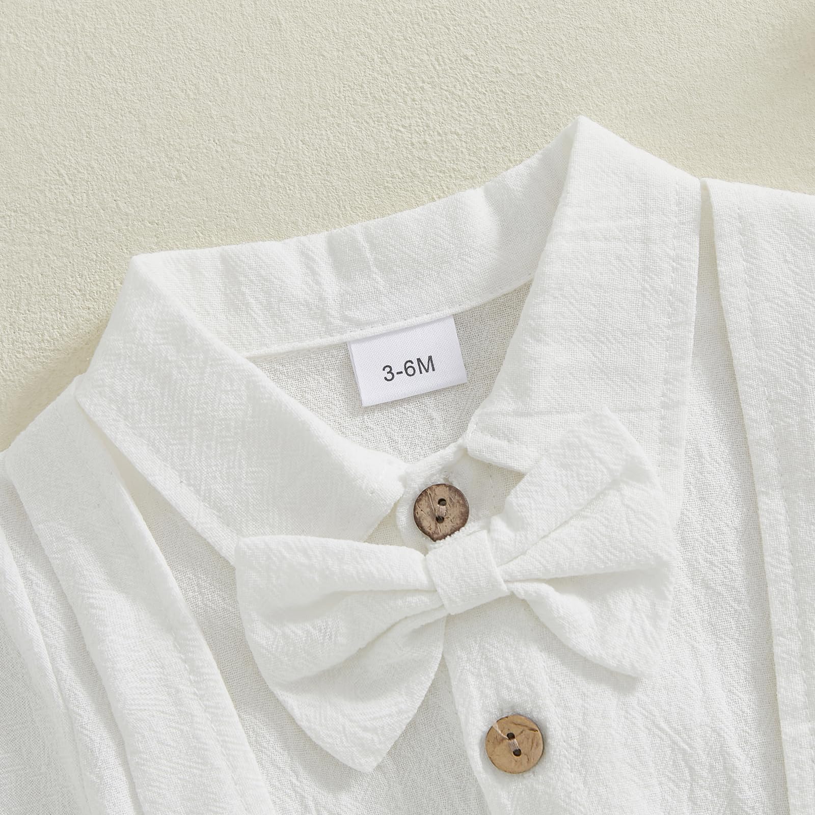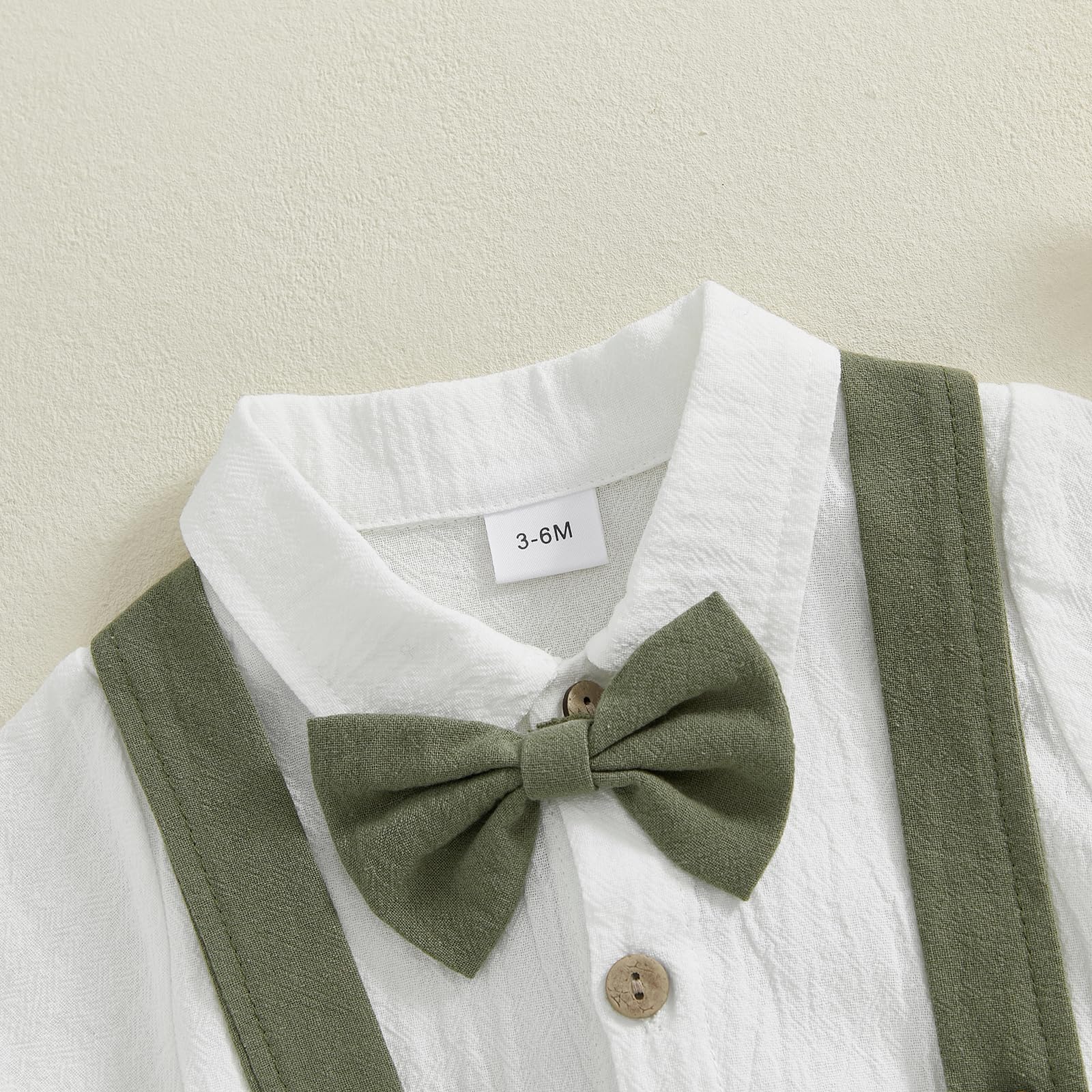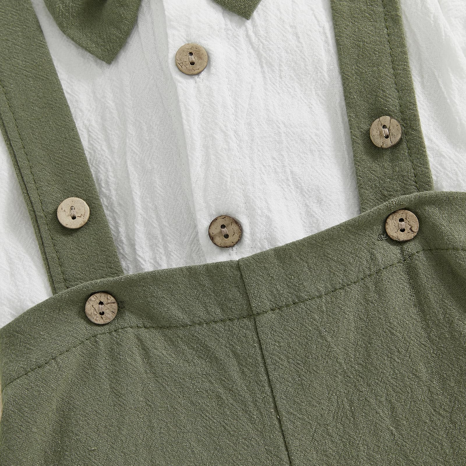 - DESIGN: Infant dress clothes boys, baby boy formal outfits summer, baby tuxedo onesie, baby boy dress shirt, short sleeve romper shirt with bow tie, crossback strap jumpsuit baby boy, turn-down collar design, matching baby boy suspender shorts, baby boy button down pant set, elastic waist, cute and fashion style