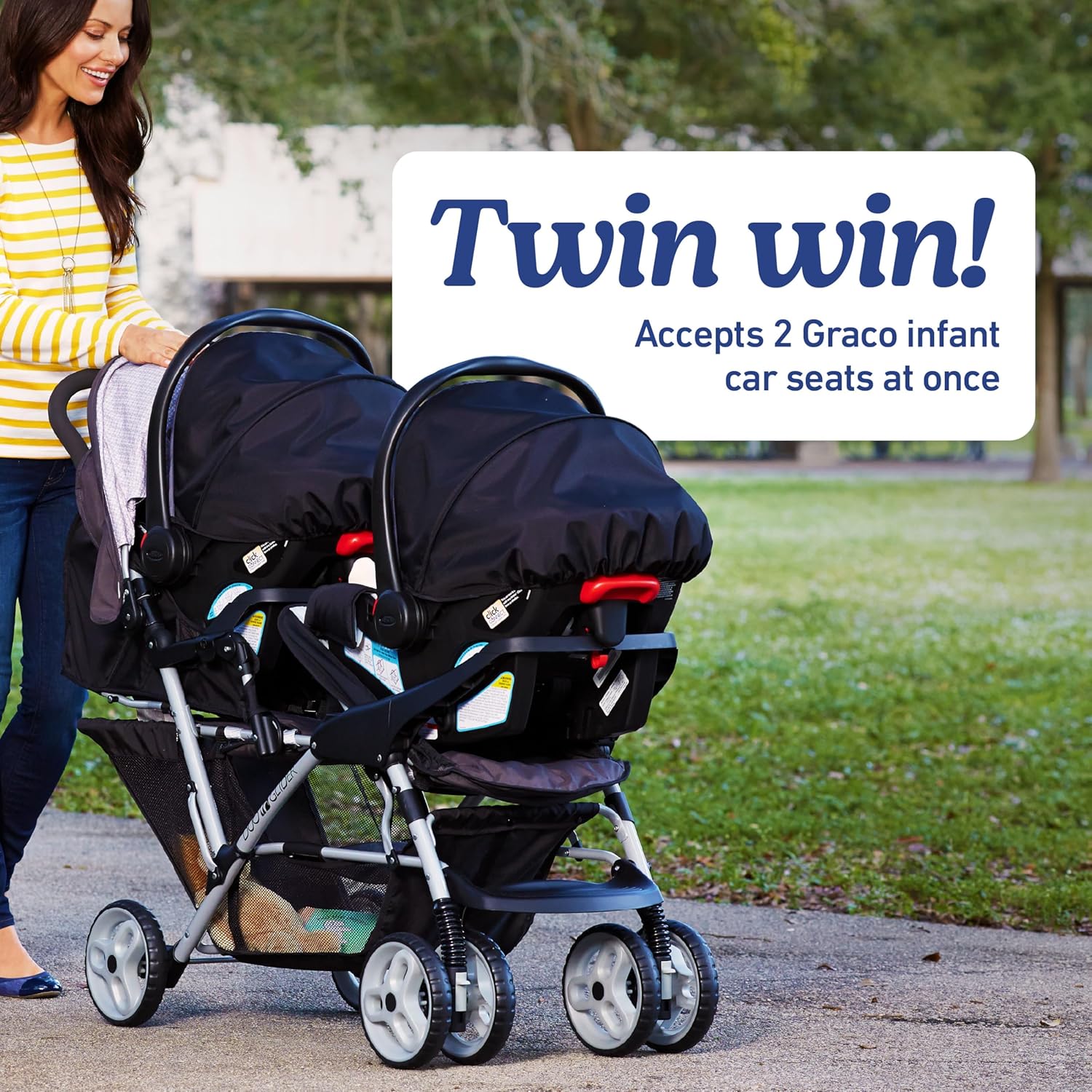 - Accepts two Graco SnugRide infant car seats (stroller is not compatible with convertible, 3-in-1, or 4-in-1 car seats); Tandem stroller features 2 toddler seats; each seat holds a child up to 40 lb