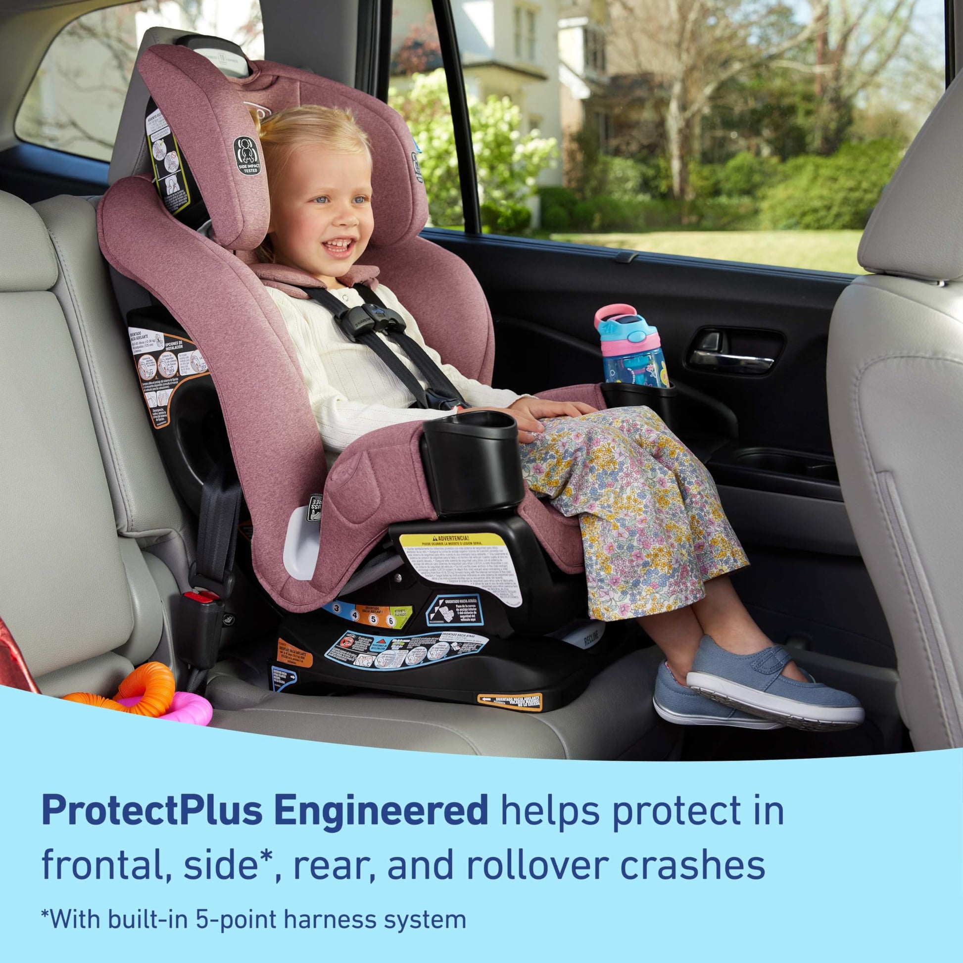 - Graco ProtectPlus Engineered: a combination of the most rigorous crash tests that helps to protect your little one in frontal, side, rear & rollover crashes