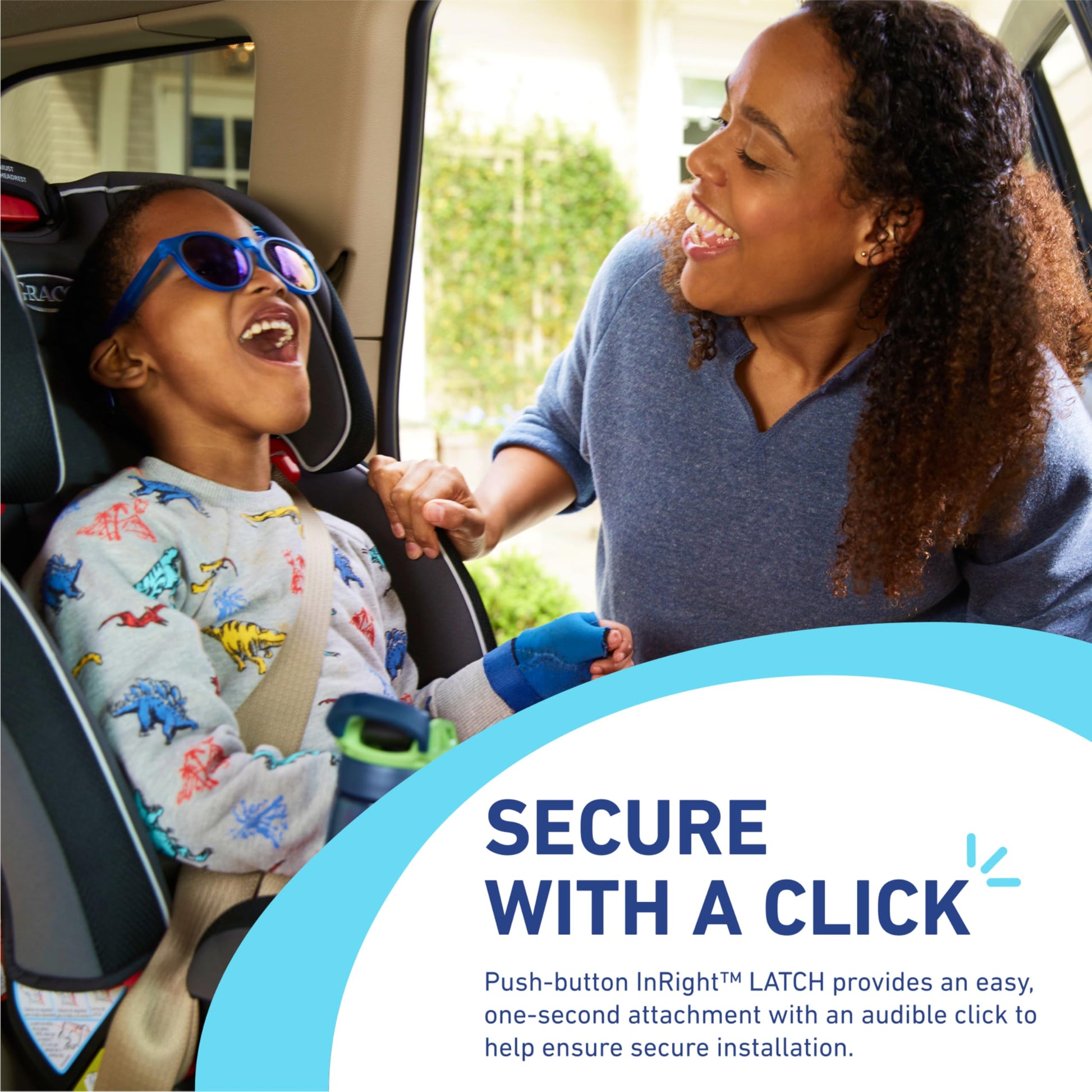 - Push-button InRight LATCH provides an easy, one-second attachment with an audible click to help ensure secure installation