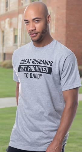 Great Husbands Get Promoted to Daddy | Funny New Father Dad Joke Paternity Gender Reveal T-Shirt for Men
