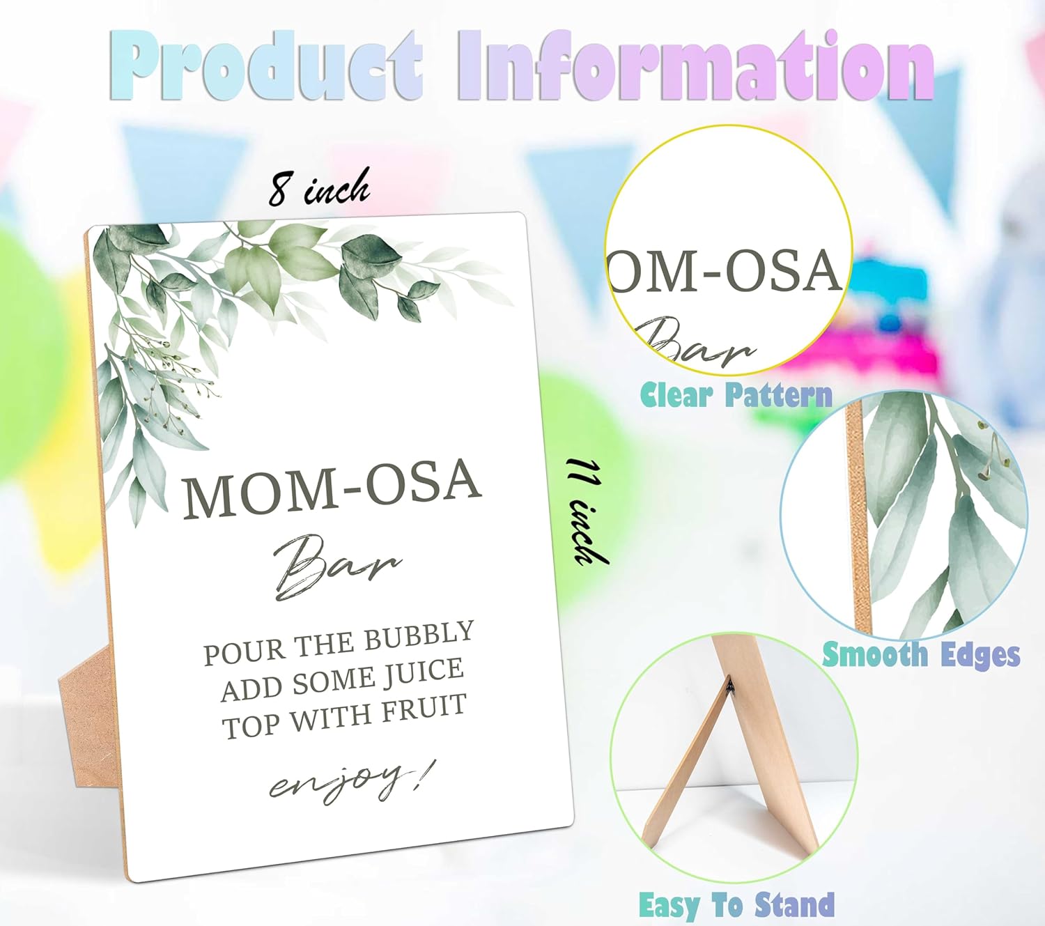 Greenery Baby Shower Table Sign, Mom-osa Bar Sign, Pack of 1 Wooden Tabletop Sign with Stand, Green Baby Shower Supplies, Gender Reveal Party Decorations - RG21
