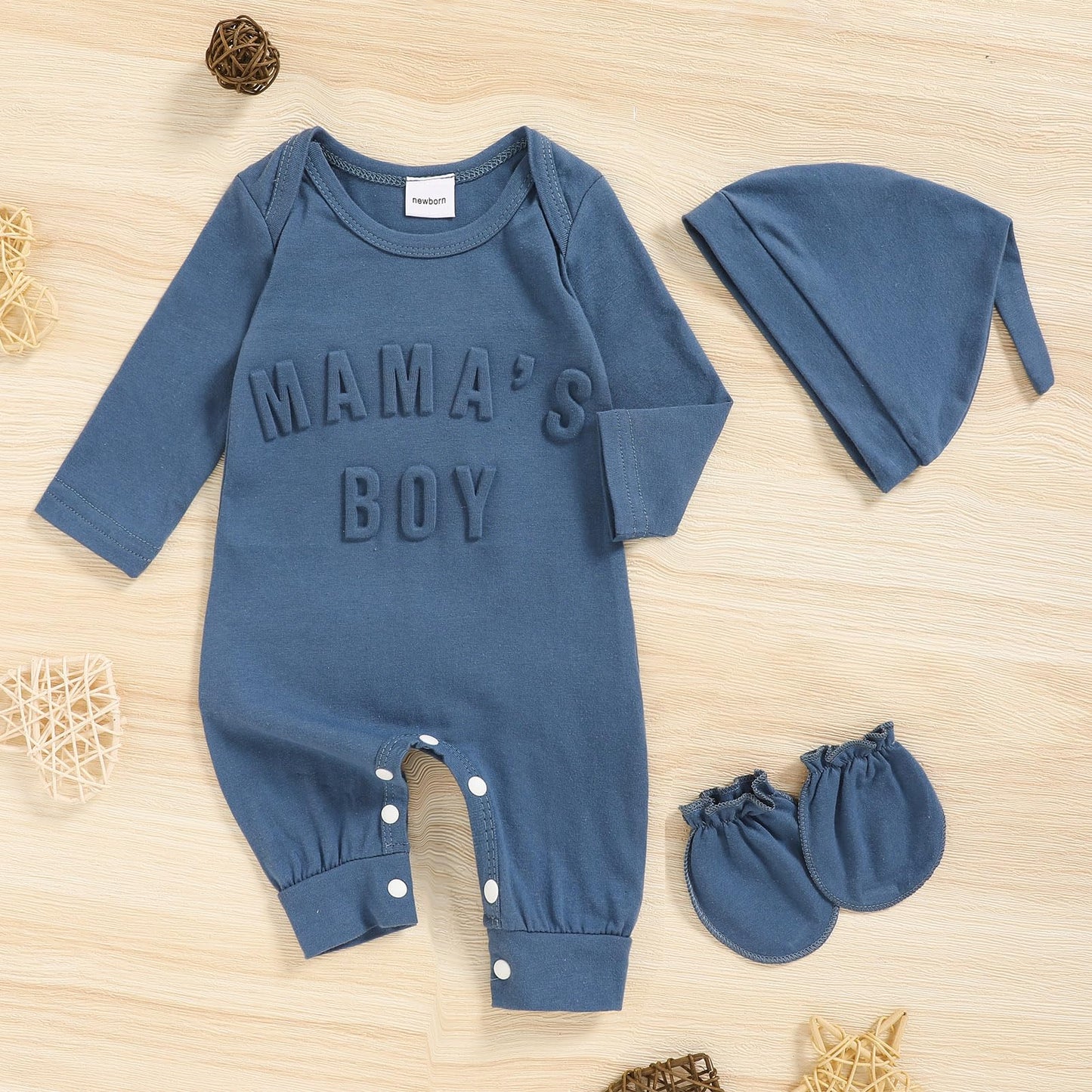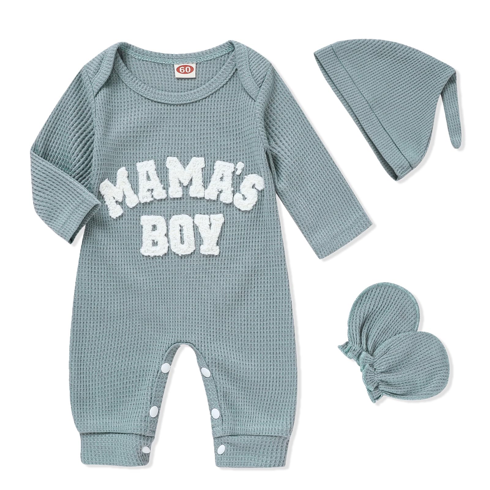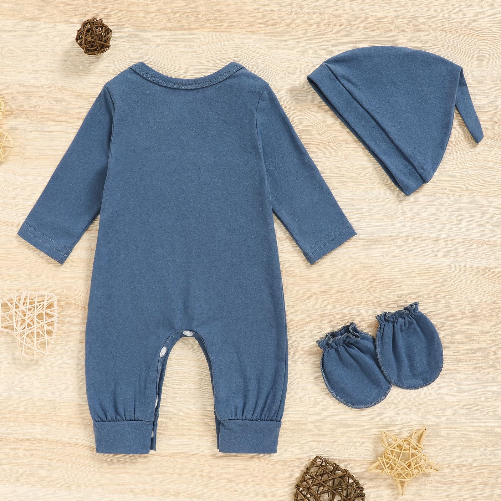 GRNSHTS Newborn Baby Boy Romper Coming Home Outfits Letter Print Bodysuit Jumpsuit+Hat+Gloves 3PCS Clothes Set