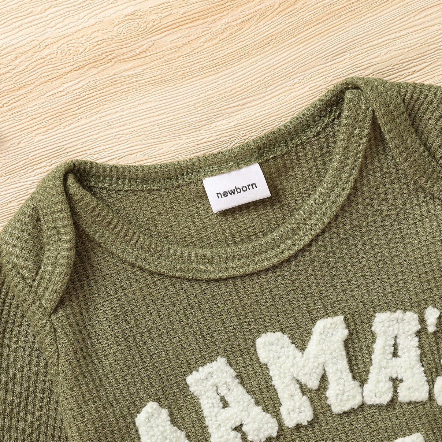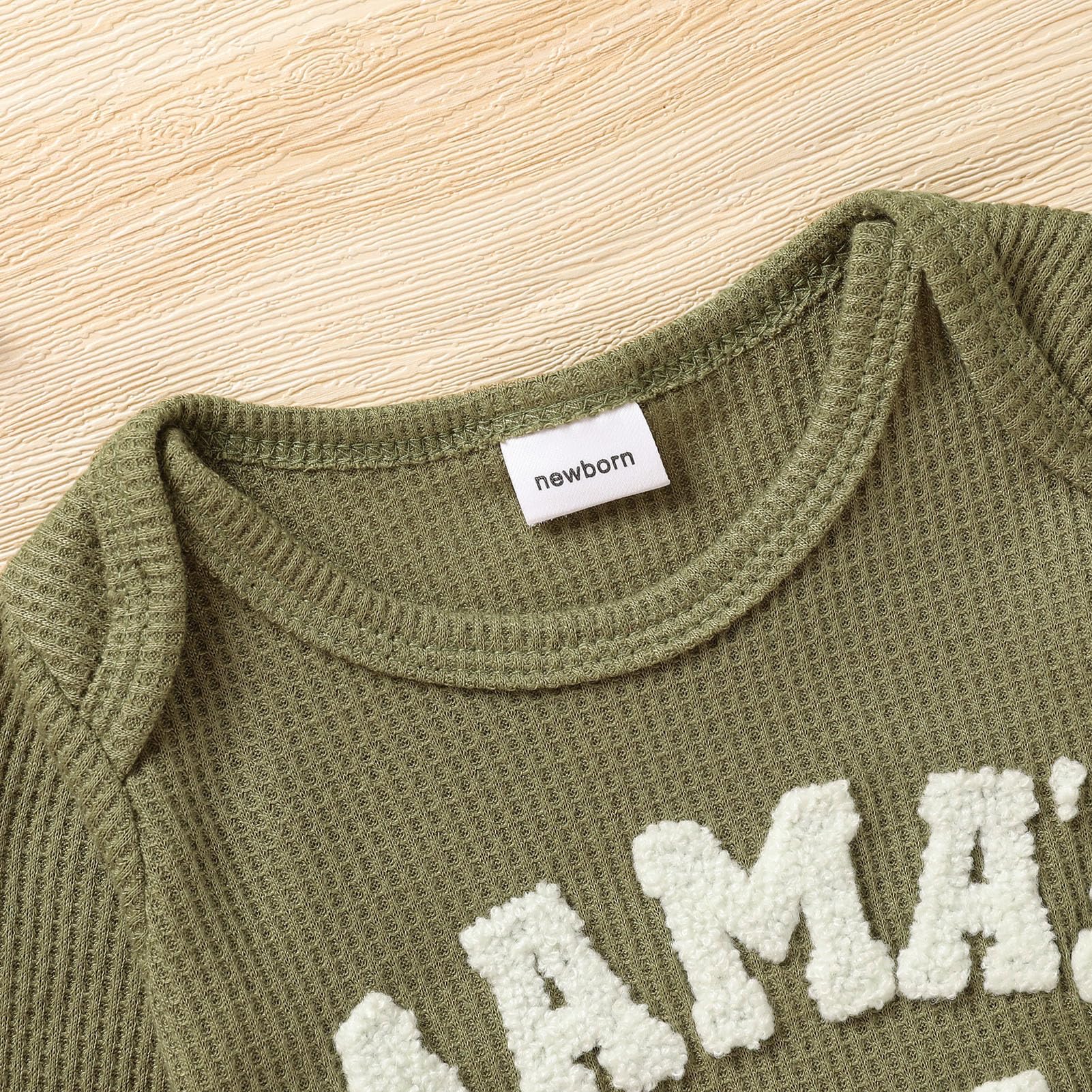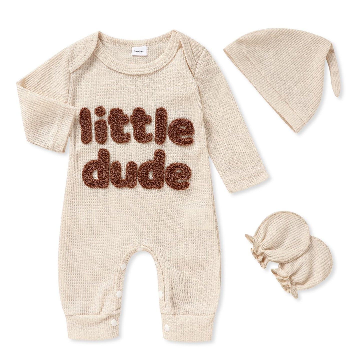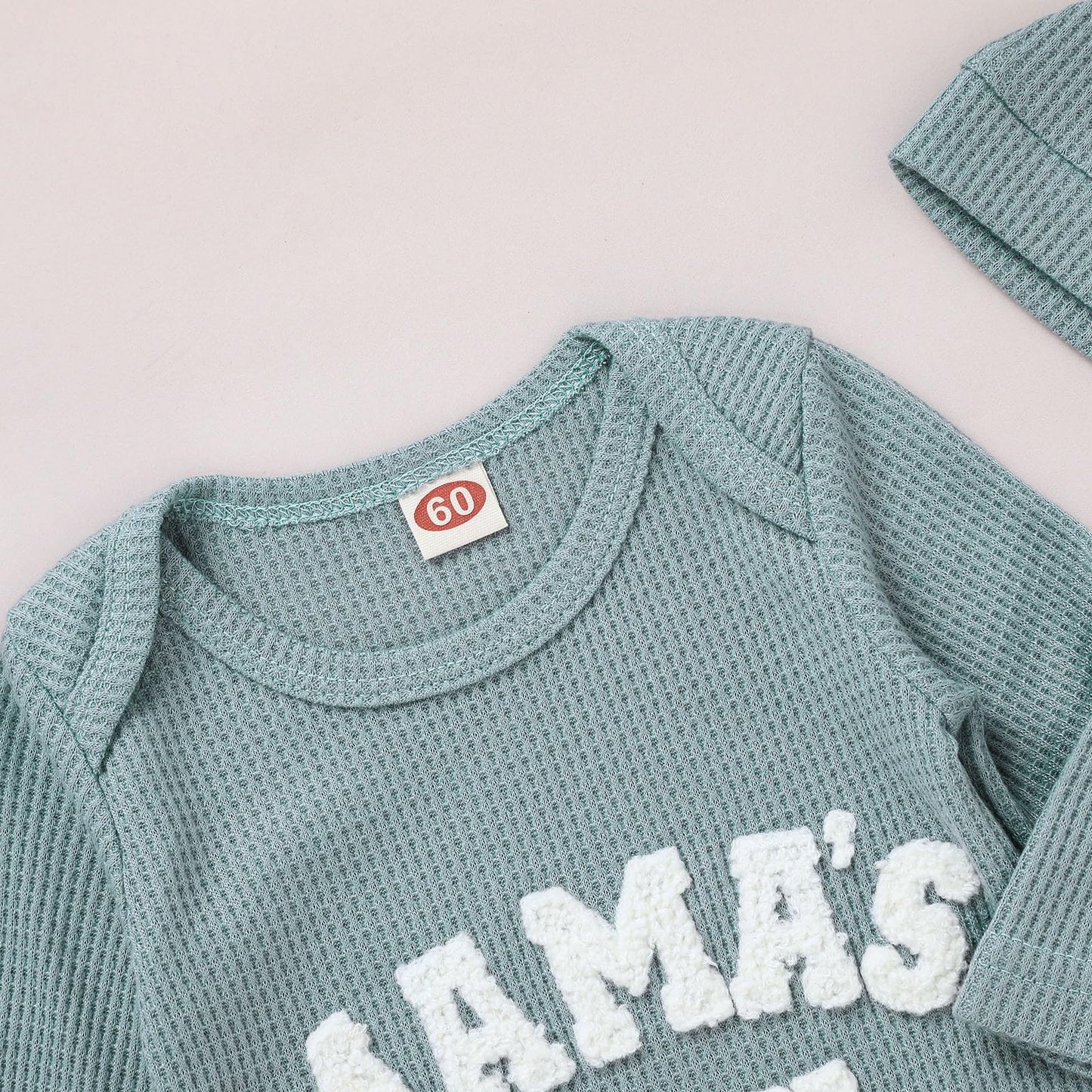 GRNSHTS Newborn Baby Boy Romper Coming Home Outfits Letter Print Bodysuit Jumpsuit+Hat+Gloves 3PCS Clothes Set