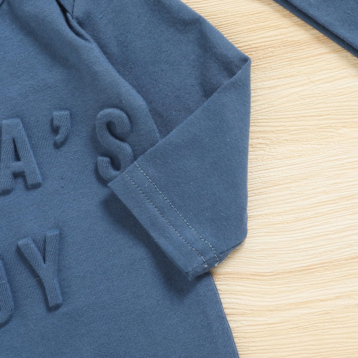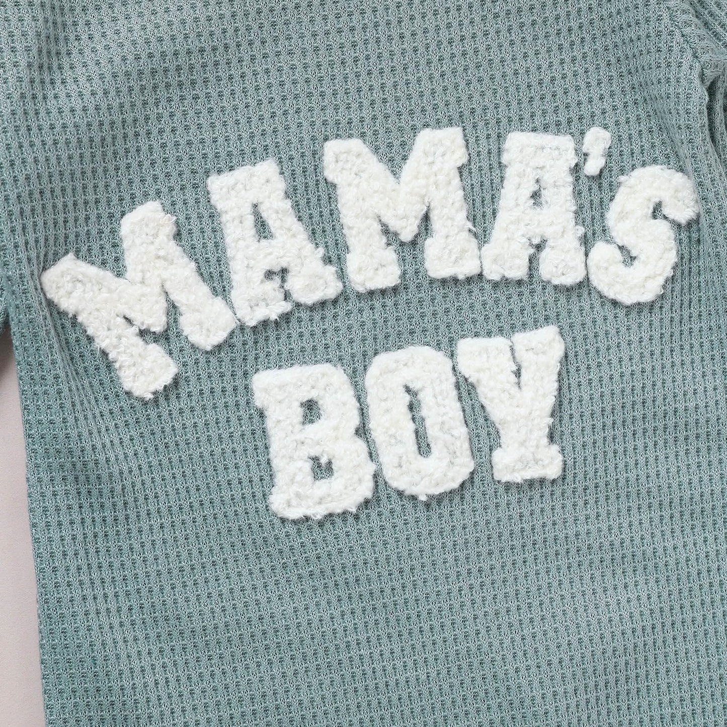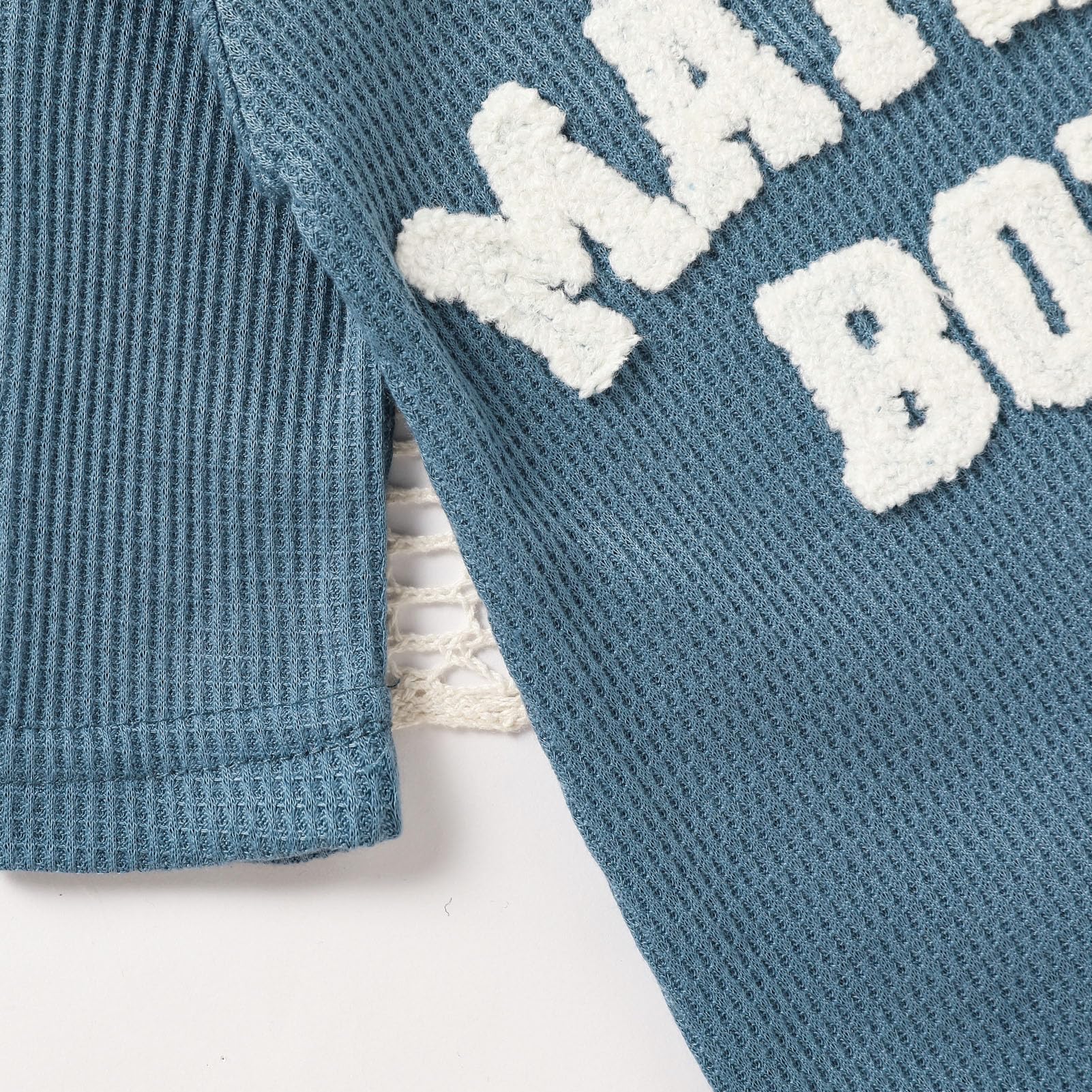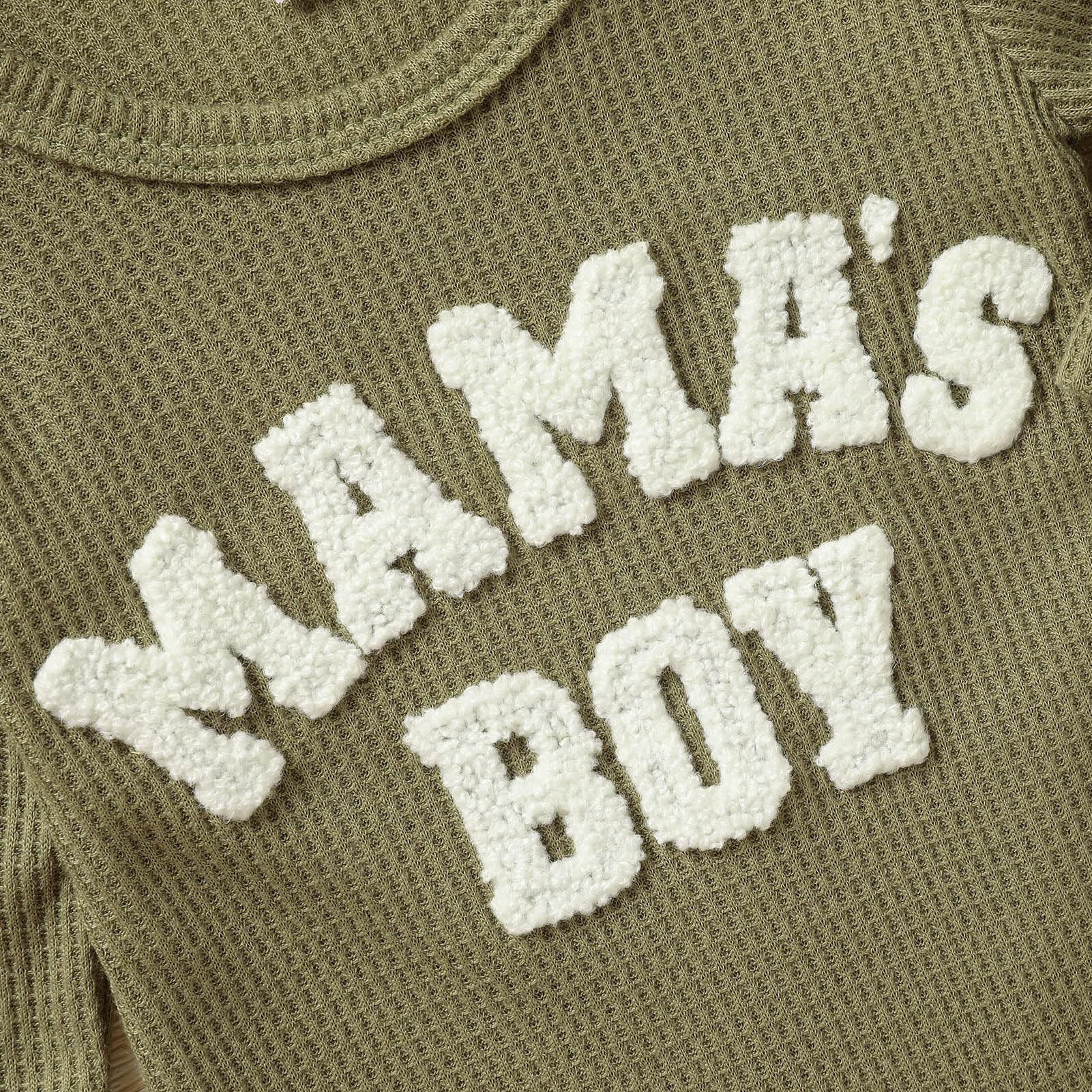 Long sleeve letter print jumpsuit, cute boy fall winter outfit.