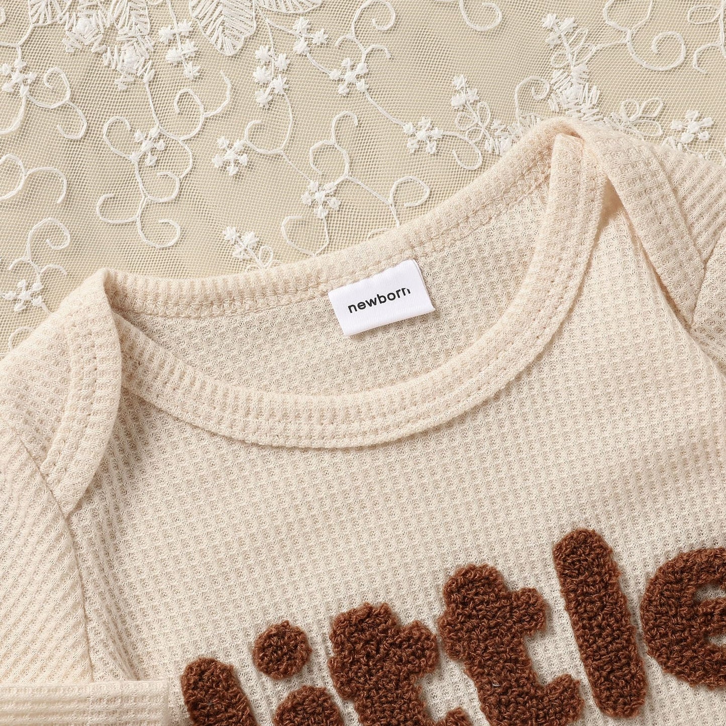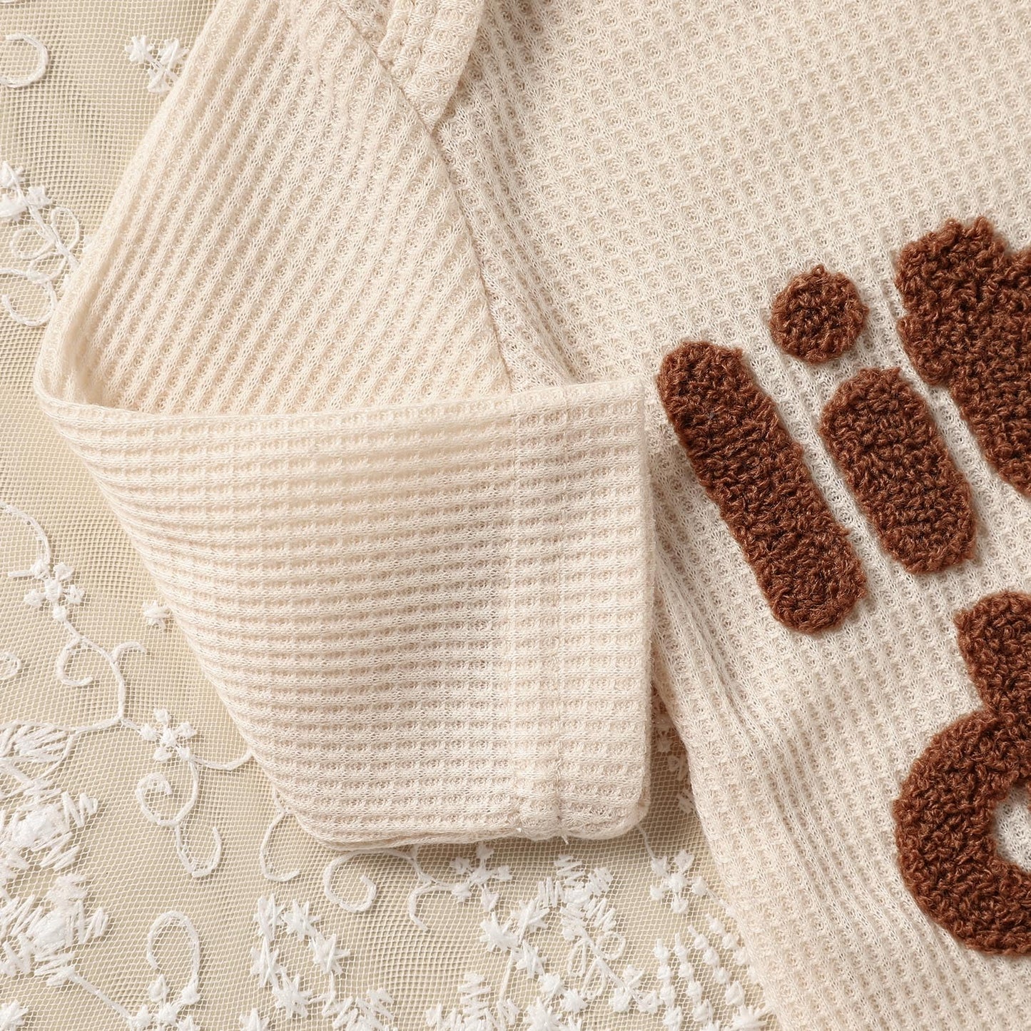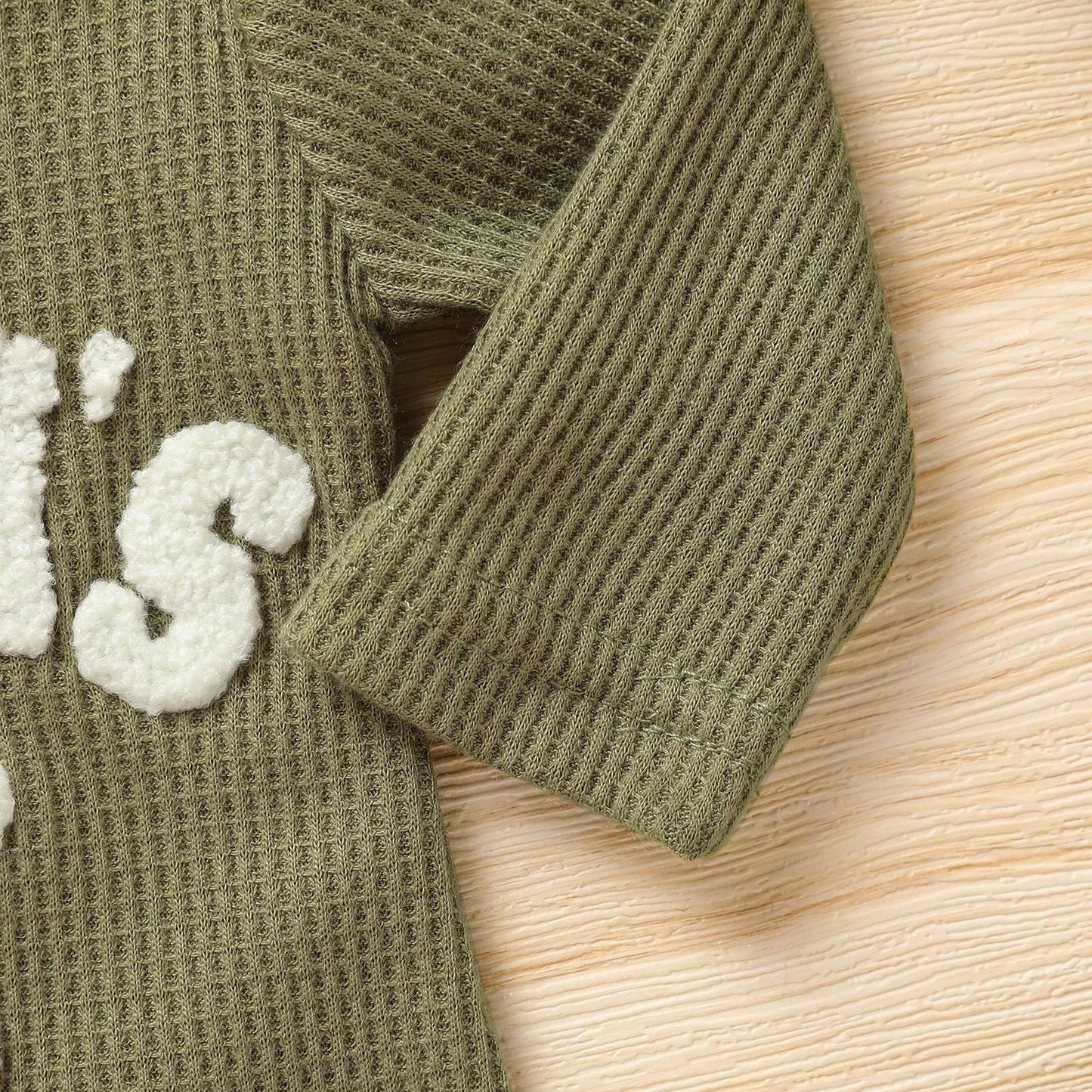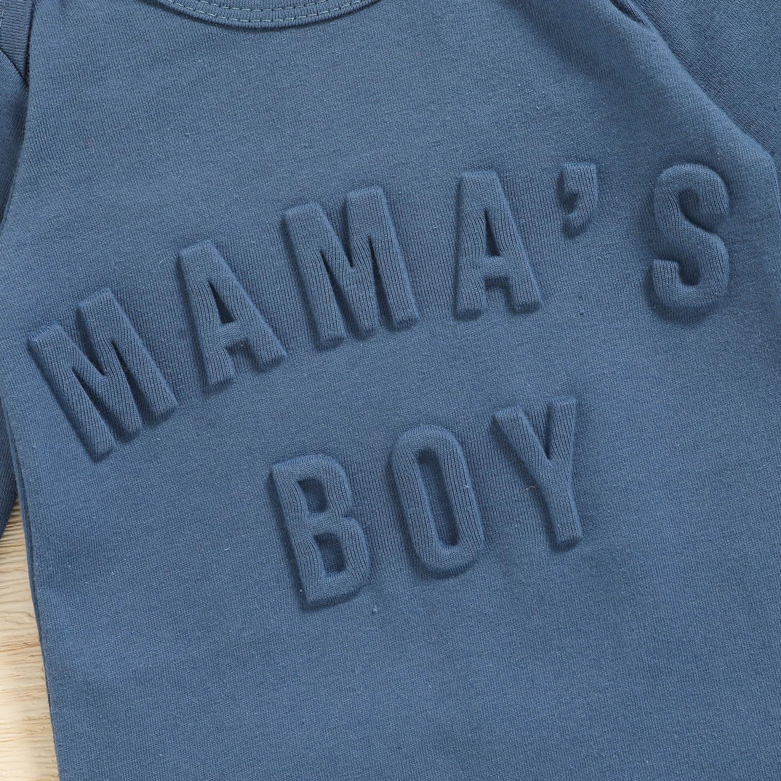 Long sleeve letter print jumpsuit, cute boy fall winter outfit.