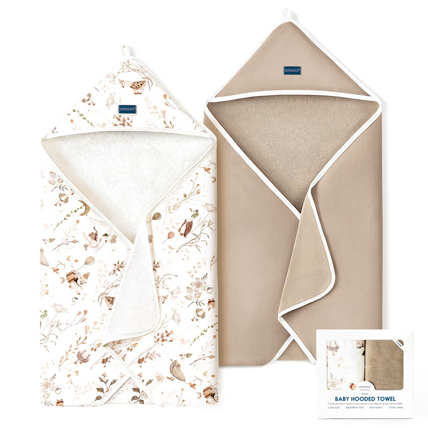 - The Perfect Baby Gift: Baby bath towels are must have item for newborn, infant and toddler. GRSSDER infant hooded towels are machine washable and dryer-friendly, perfect for baby showers, birthdays, or as a thoughtful baby gift for new parents, our sets cater to every baby's needs, from newborns to toddlers, ensuring they are dry, warm, and comfortable.